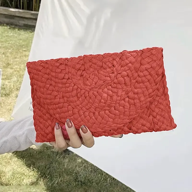 Sac Pochette Paille Tressée Bohème – Rouge
