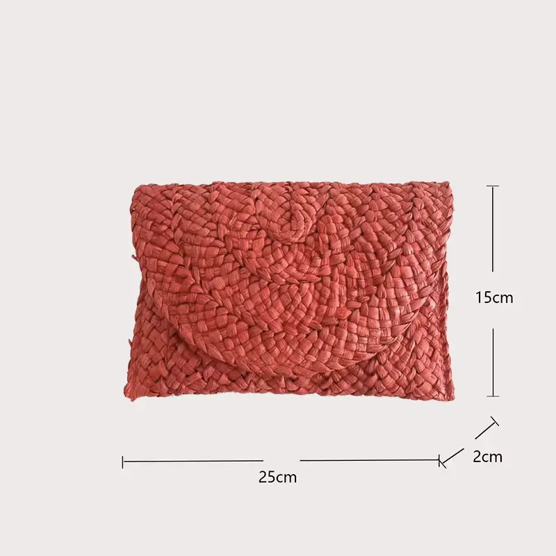 Distinguez-vous en adoptant le style bohème ! Simple et élégante, ce sac pochette paille tressée accessoirisera parfaitement votre tenue.