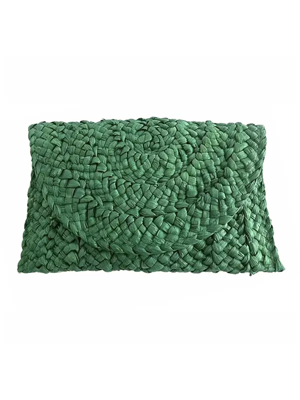 Sac Pochette Paille Tressée Bohème Vert