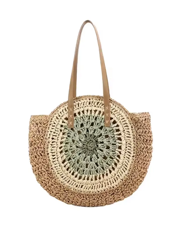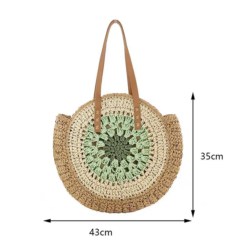 Sac Rond Paille Bohème Tissé avec Fermeture – Vert