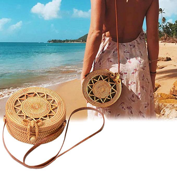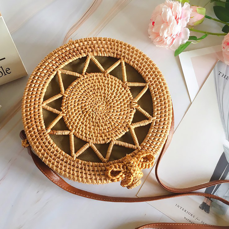 Ce petit sac rond Bali, très en vogue depuis 2018, est fabriqué à partir de matières brutes et naturelles. Cette année, le Sac Rotin Matahari se démarque par ses détails géométriques au niveau du tissage, représentant un soleil. Ce sac de style bohème sera le compagnon parfait de vos tenues estivales ! Sobre et original, ce petit sac rond est devenu en quelque temps un It-accessoire qui peut se porter en toute circonstance : à la plage comme en virée shopping. N’hésitez pas, ajoutez une touche bohème à votre tenue classique chic !
