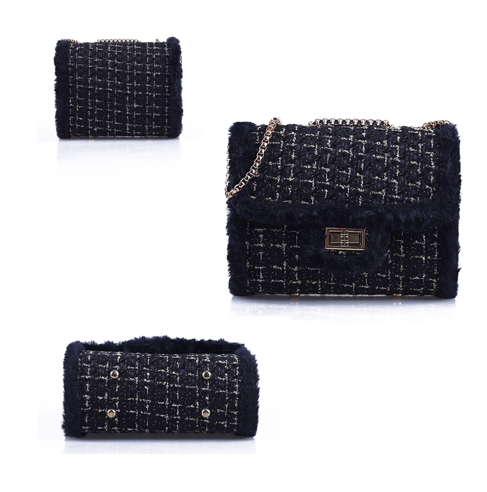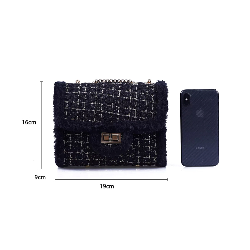 Cette saison, mettez un peu d’élégance à votre tenue avec ce sac tweed noir Faustine. Fabriqué à partir de similicuir et de laine de haute qualités, notre sac Faustine est prêt à mettre en valeur n’importe quelle tenue. Que ce soit votre tenue quotidienne, votre tenue de soirée ou bien pour une cérémonie, sa taille est idéal pour y glisser portable, portefeuille, maquillage… Juste le nécessaire dont toute femme à besoin !