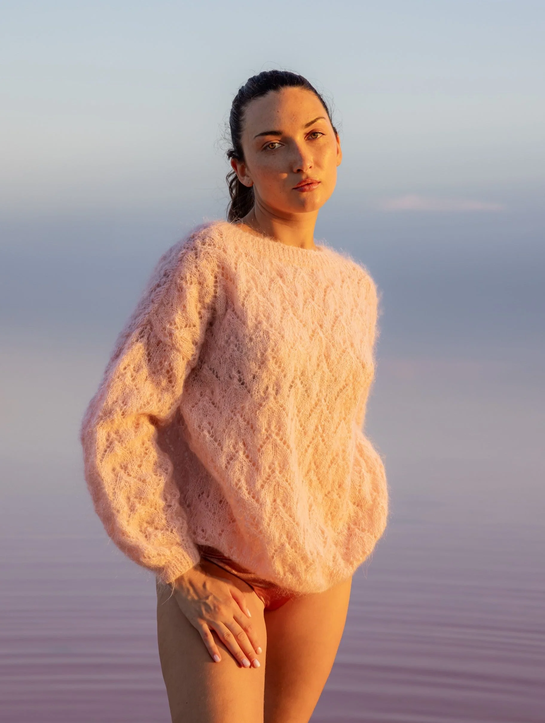 Ce pull étant tricoté à la main, les dimensions peuvent légèrement varier.