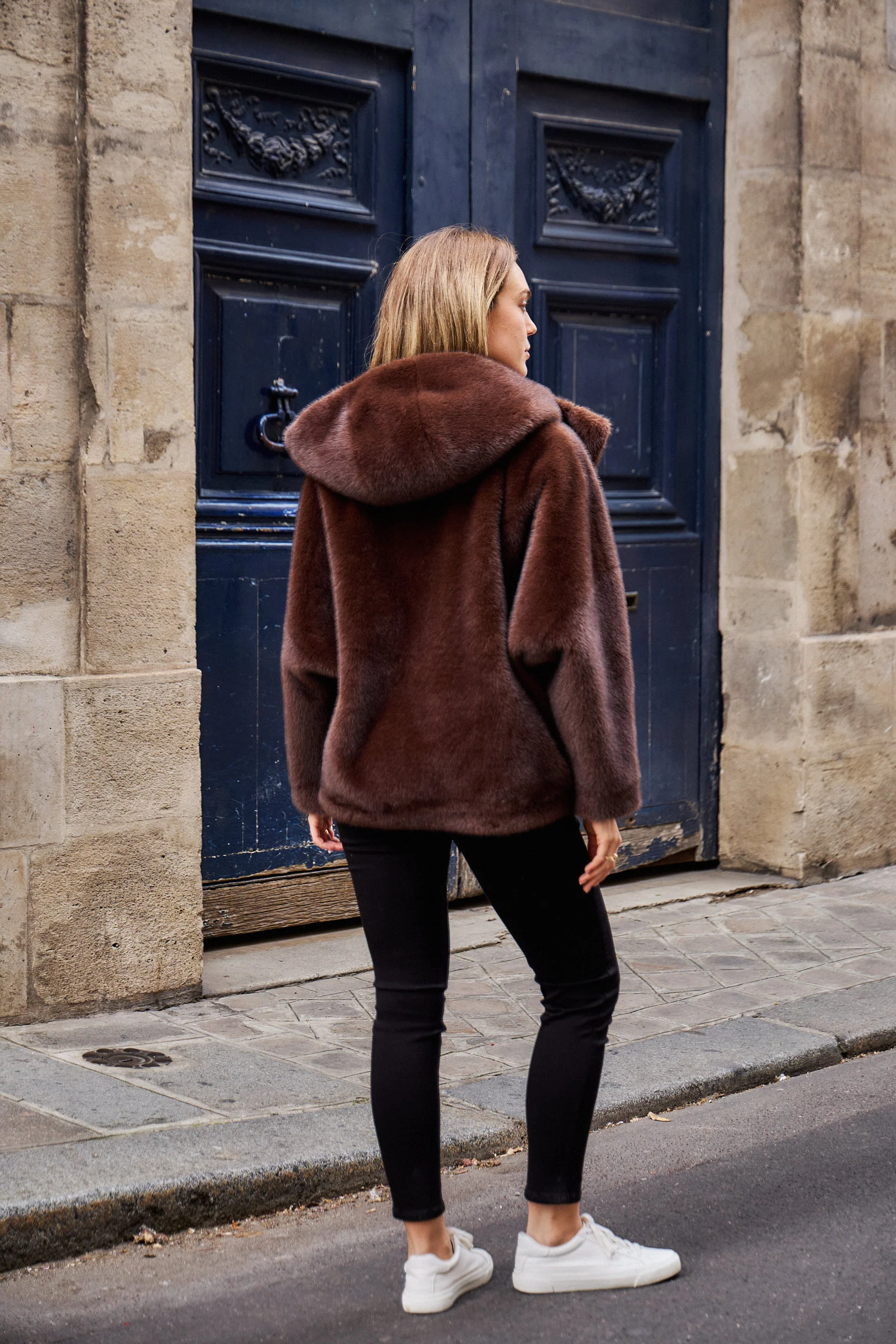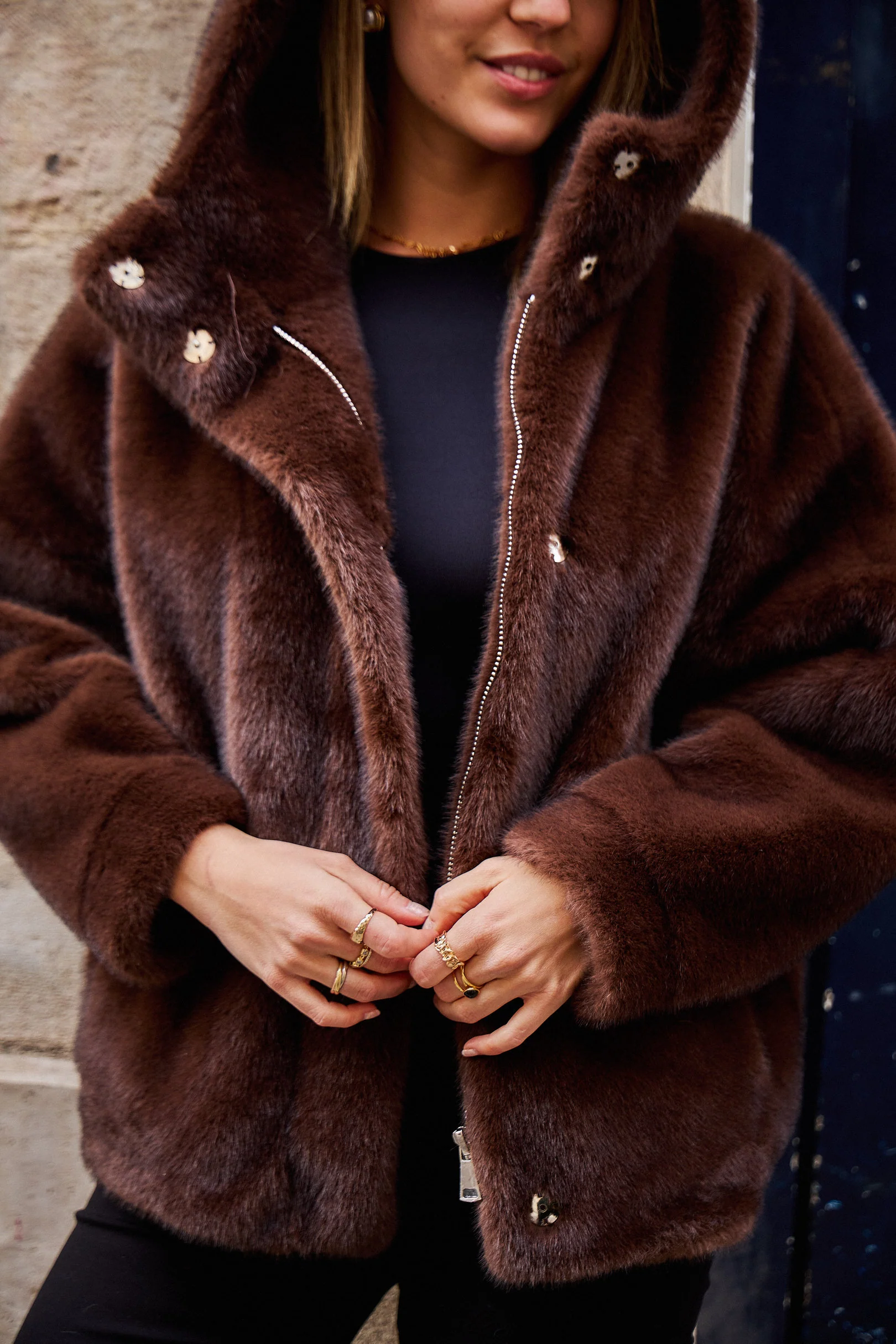 SCARLETT – Veste en fausse fourrure à capuche