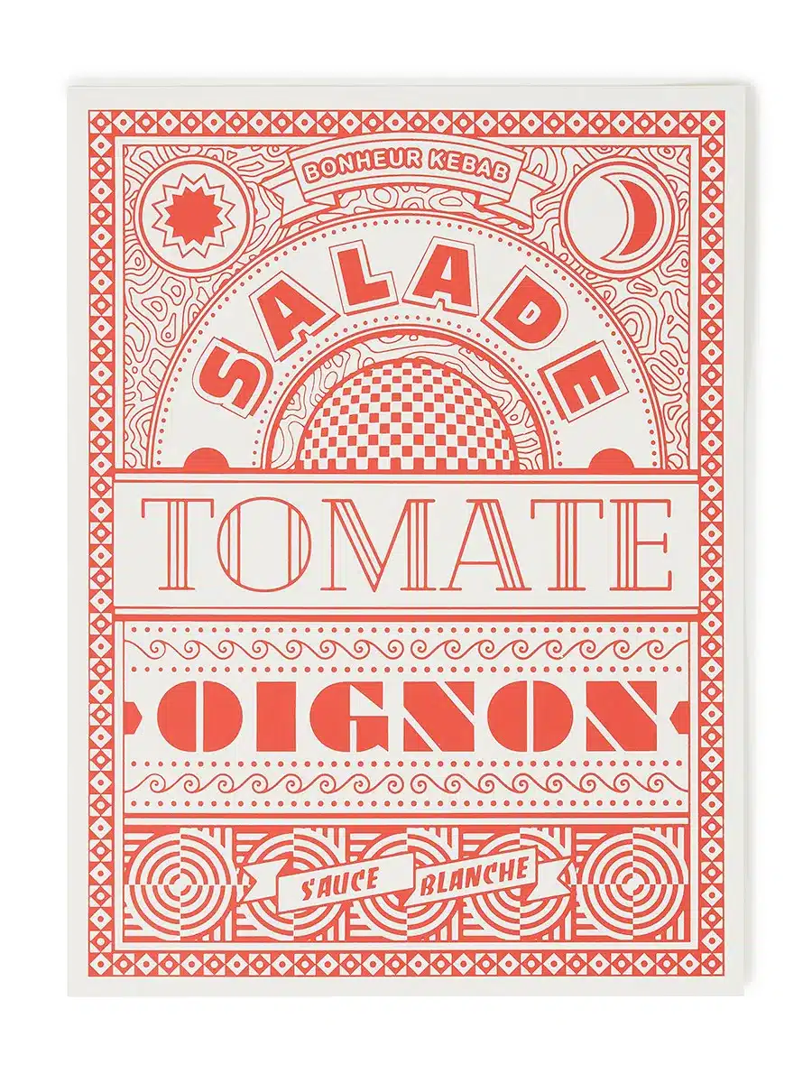 Sérigraphie rouge SALADE / TOMATE / OIGNON