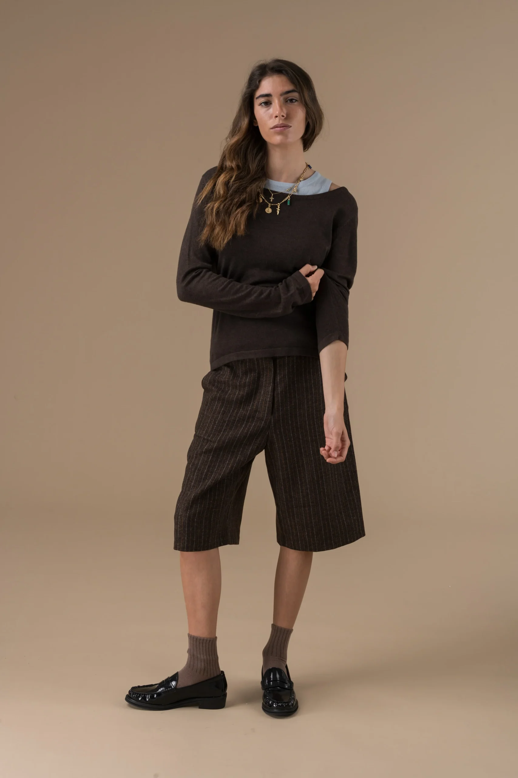 Découvrez le short Brent d’Adoré Paris, une pièce qui allie élégance et confort. Avec sa coupe structurée à pinces et sa longueur aux genoux, il apporte une touche sophistiquée à votre tenue. Confectionné dans un tissu à fines rayures, il évoque un style à la fois chic et décontracté. Sa ligne épurée et sa matière légère en font le vêtement idéal pour les journées ensoleillées, parfait pour une allure soignée sans effort.