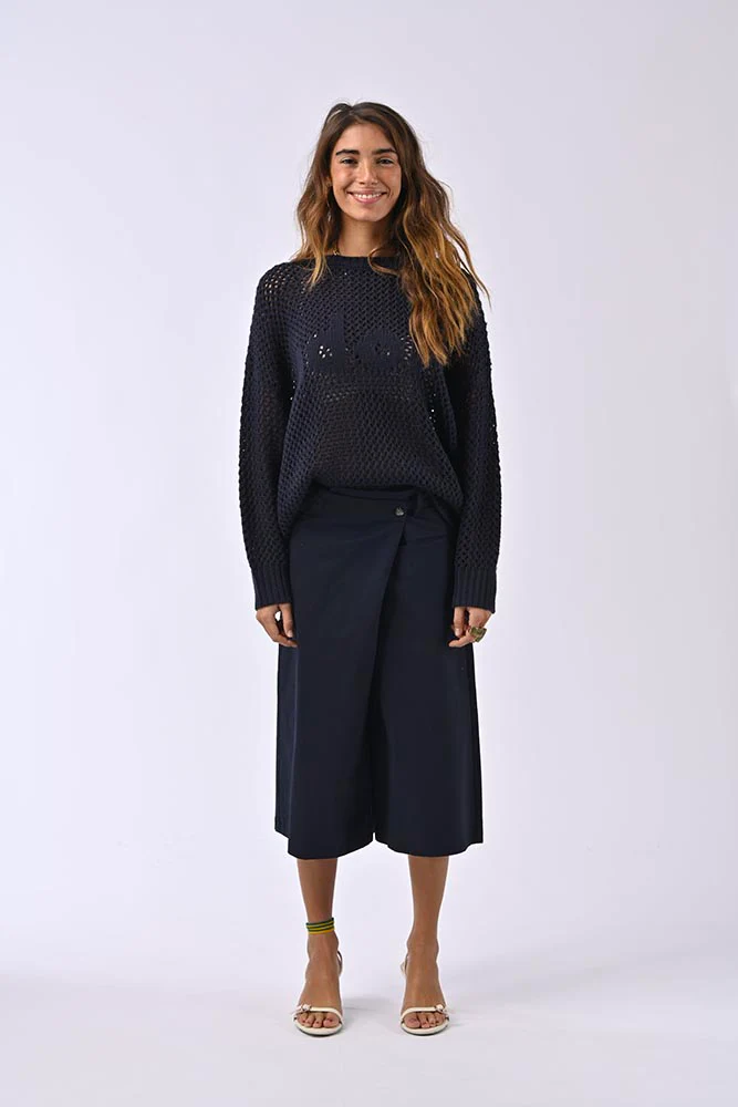 Conçu pour un port confortable, il présente une taille basse et un boutonnage asymétrique, rehaussé par une poche plaquée sur le devant. Son tissu léger et fluide en fait un choix idéal pour les journées chaudes, tout en garantissant une grande liberté de mouvement.