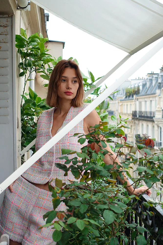 Le short Thalys Rose allie élégance et confort avec sa coupe droite et ses ourlets aux jambes. Son tissu en tweed multicolore offre un mélange subtil de nuances de rose, de blanc et de touches vives, parfait pour un style estival dynamique.