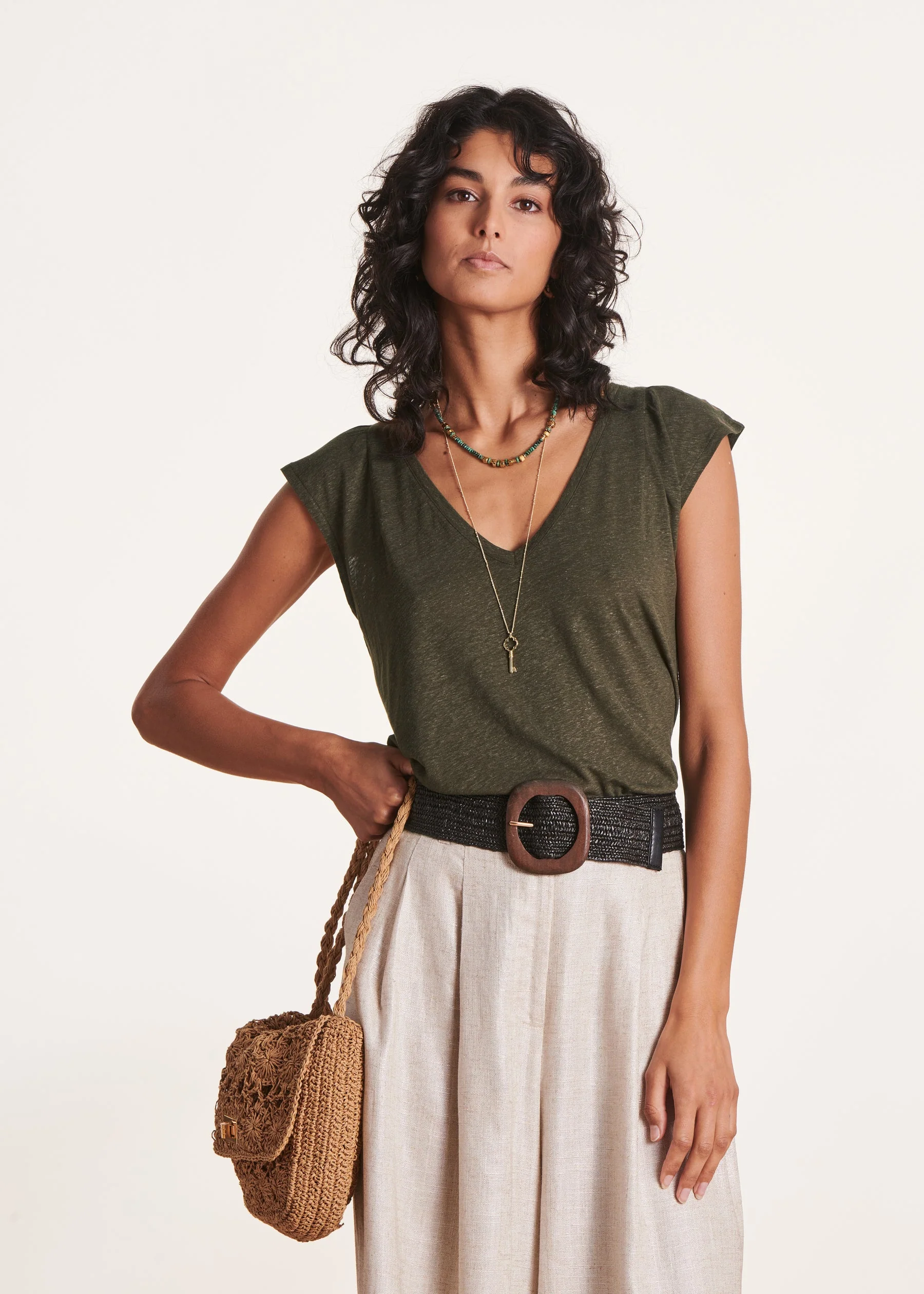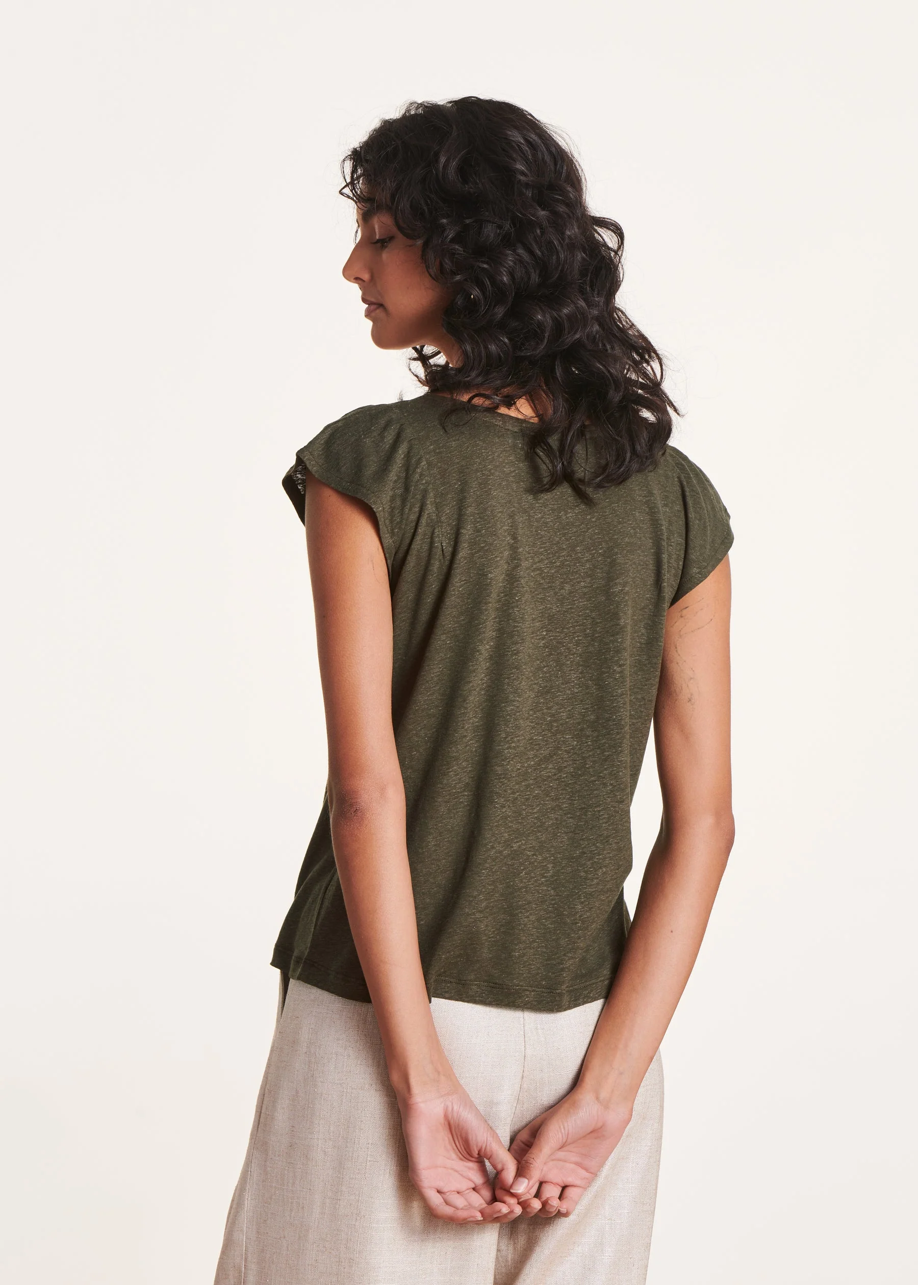 – Tee-shirt coupe ample en lyocell et lin– Petites manches courtes– Encolure V– Fronces sur la tête de manche