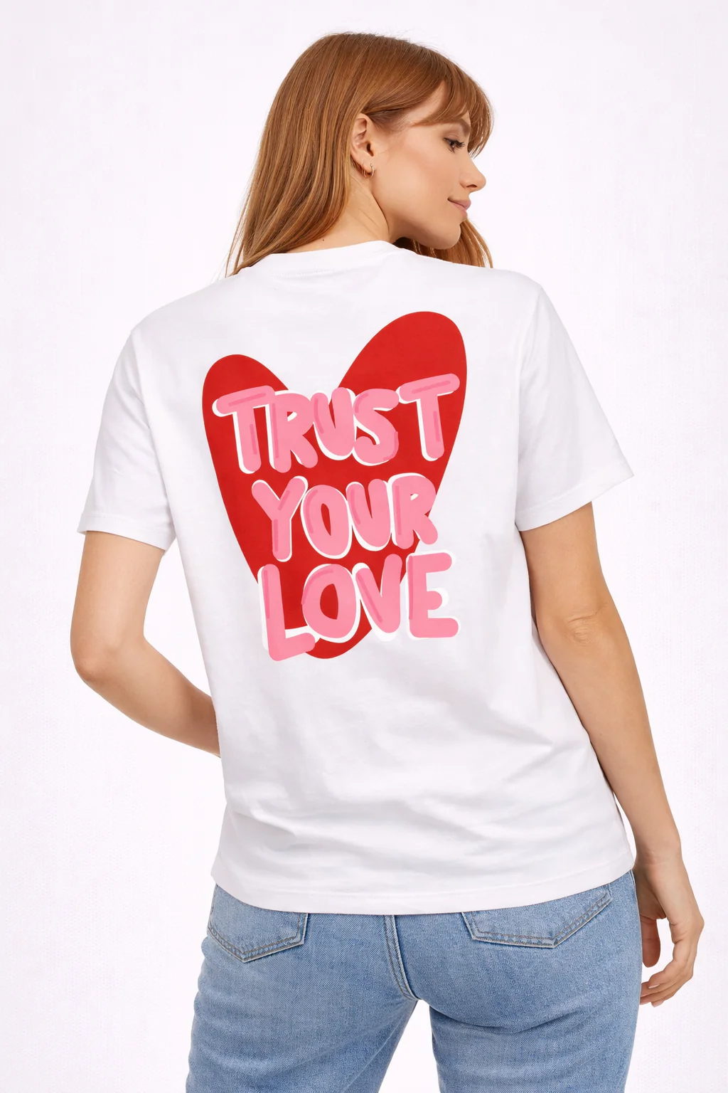 - Imprimé : Cœur avec inscription « Trust Love » à l’avant et à l’arrière