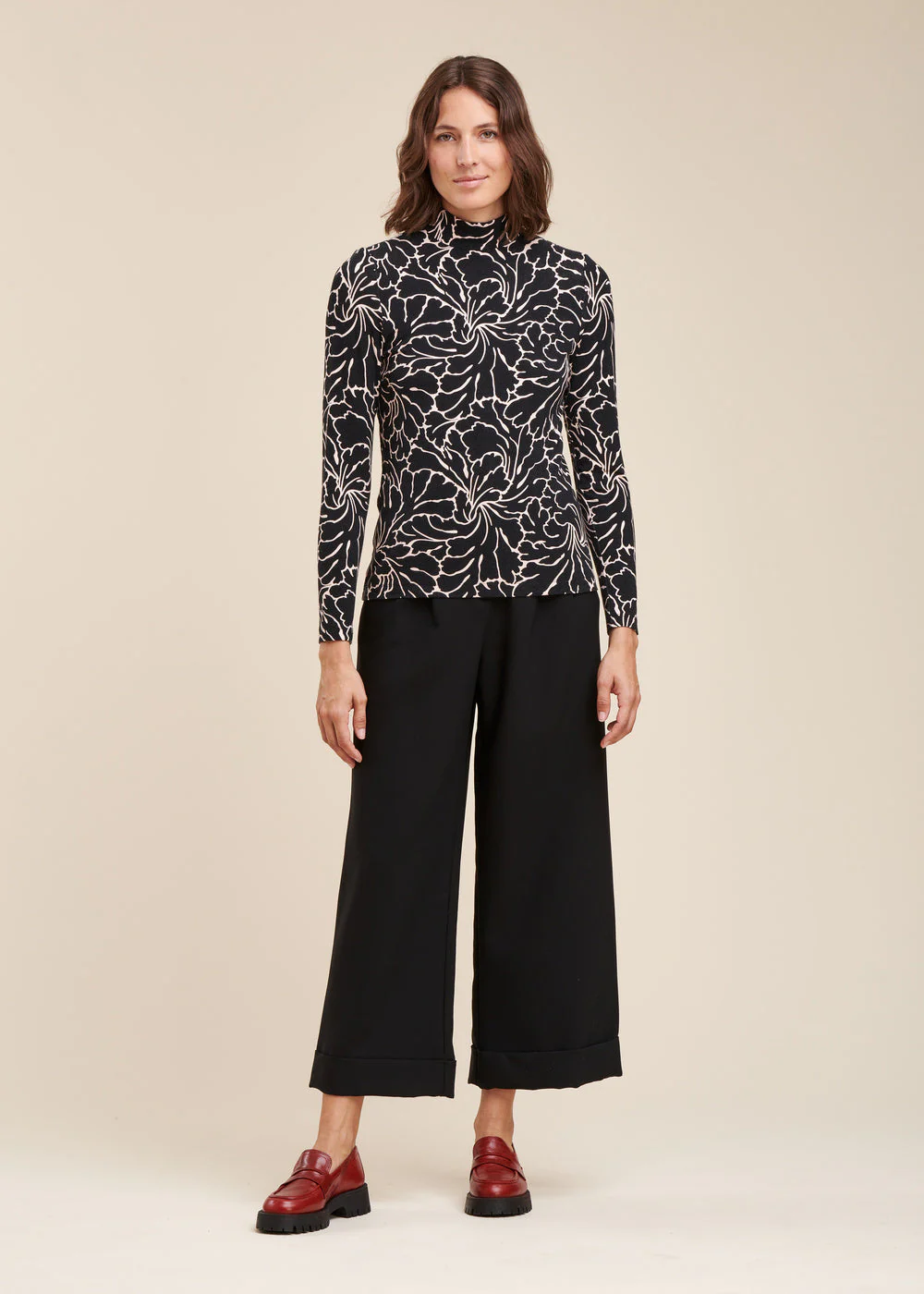 Tee-shirt en jersey à imprimé floral en viscose écoresponsable Ecovero, col cheminée, manches longues.