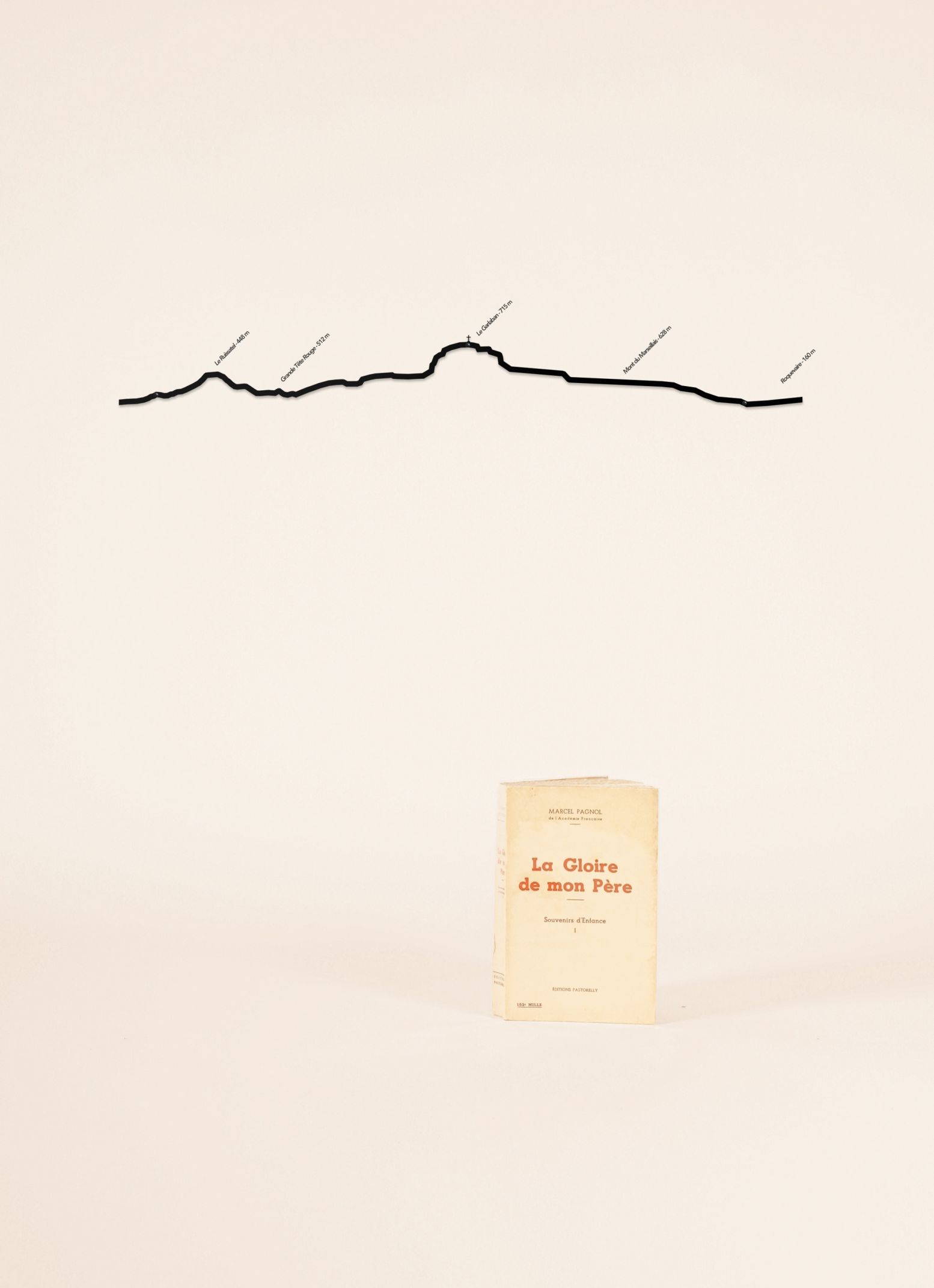 La silhouette du Garlaban depuis Aubagne. On y voit d’Ouest en Est, le Ruissatel, la grande tête Rouge, le Garlaban, le Mont du Marseillais et Roquevaire. Le nom des sommets est inclus dans le produit. Ligne en acier de 1,5 mm d’épaisseur, à fixer au mur avec 3 clous en extérieur comme en intérieur. Tous […]