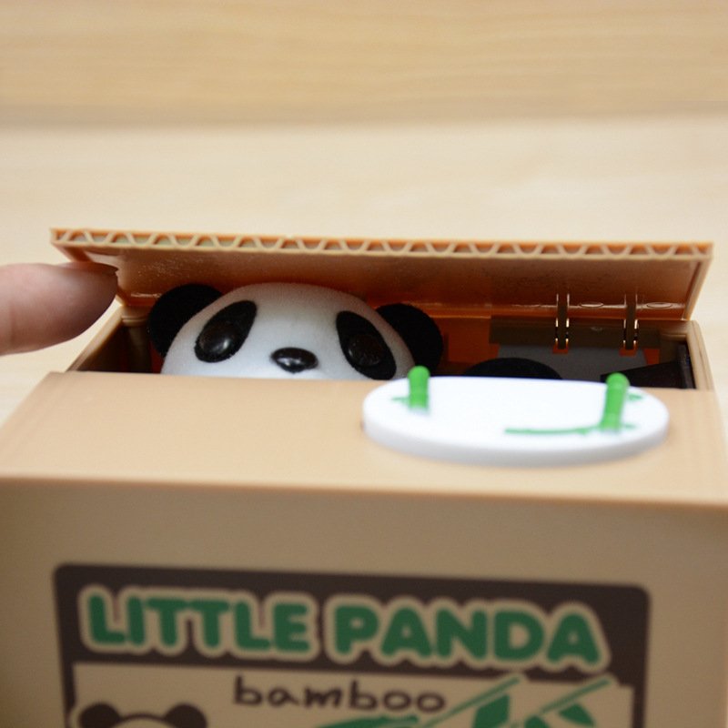 [vc_row][vc_column width= »1/2″][vc_custom_heading text= »Il paraît que si les pandas ne mangent que des pousses de bambou, c’est qu’ils n’ont rien d’autre à se mettre sous la dent. » font_container= »tag:h5|font_size:17px|text_align:left » google_fonts= »font_family:Libre%20Baskerville%3Aregular%2Citalic%2C700|font_style:400%20italic%3A400%3Aitalic »][vc_custom_heading text= »La preuve avec cette tirelire ! À peine une pièce est-elle posée sur le rebord de la boîte, qu’une adorable petite patte sort soudain pour l’attraper.