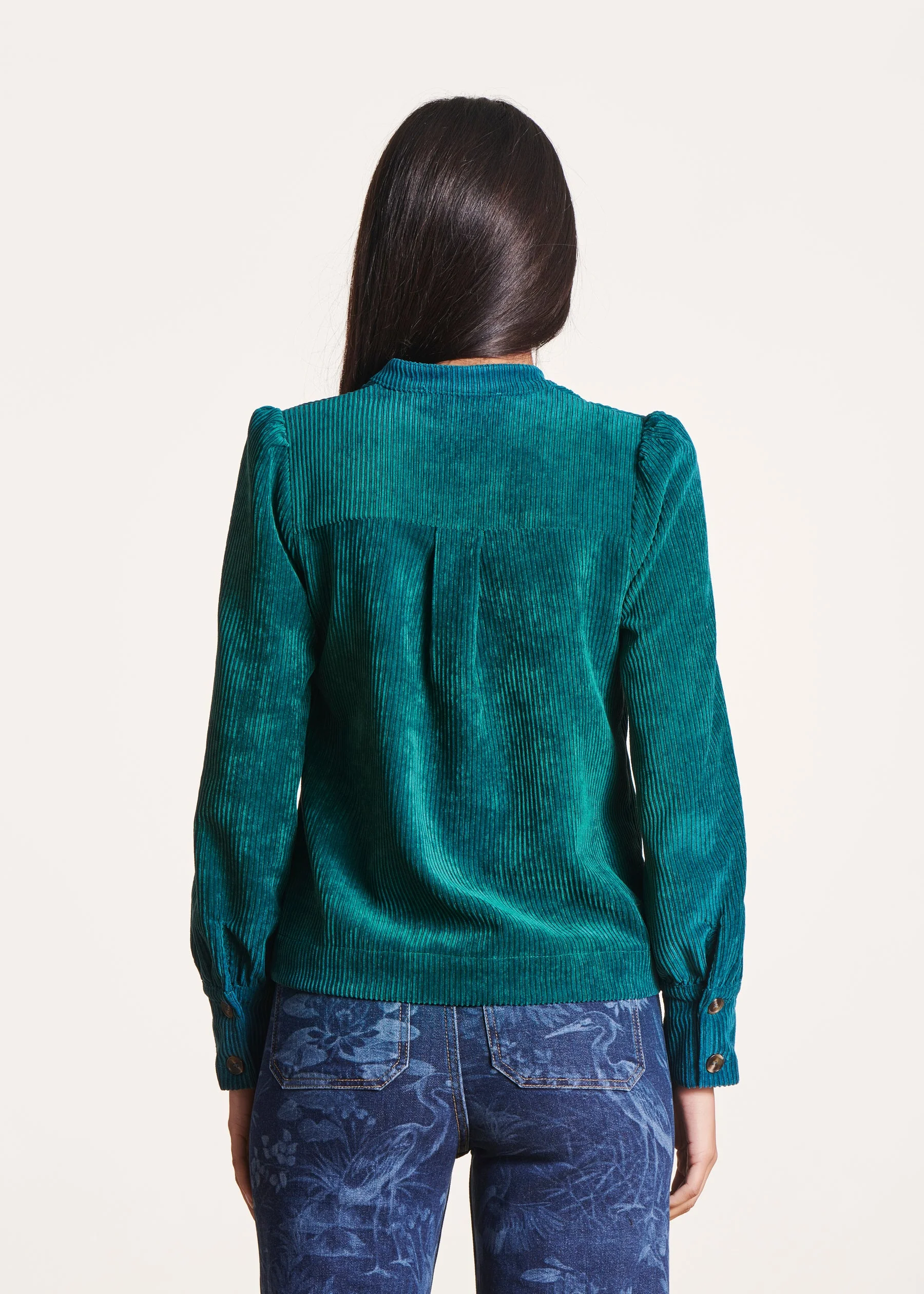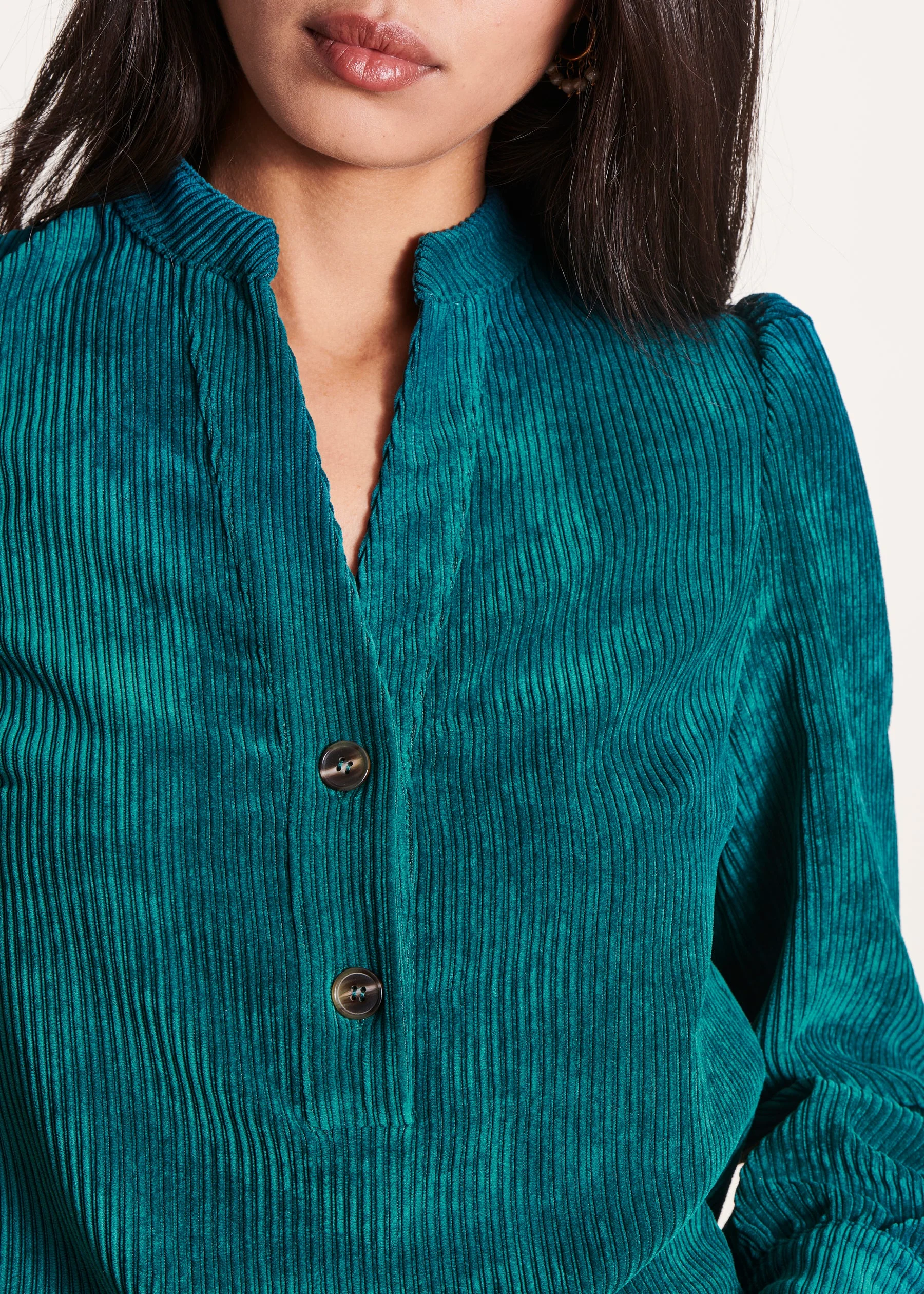 – Top manches longues– Encolure tunisienne boutonnée– Manches longues bouffantes avec larges poignets boutonnés