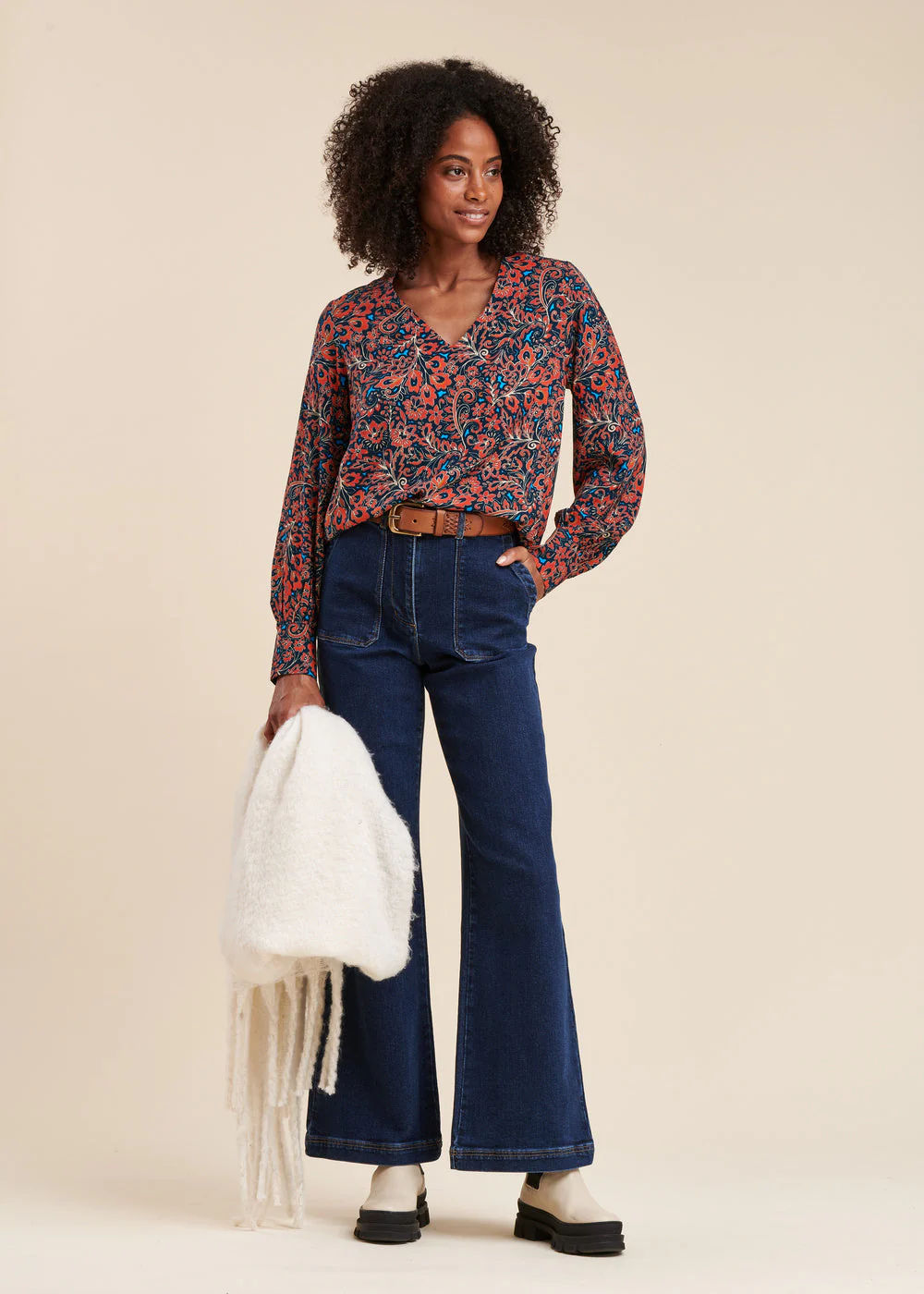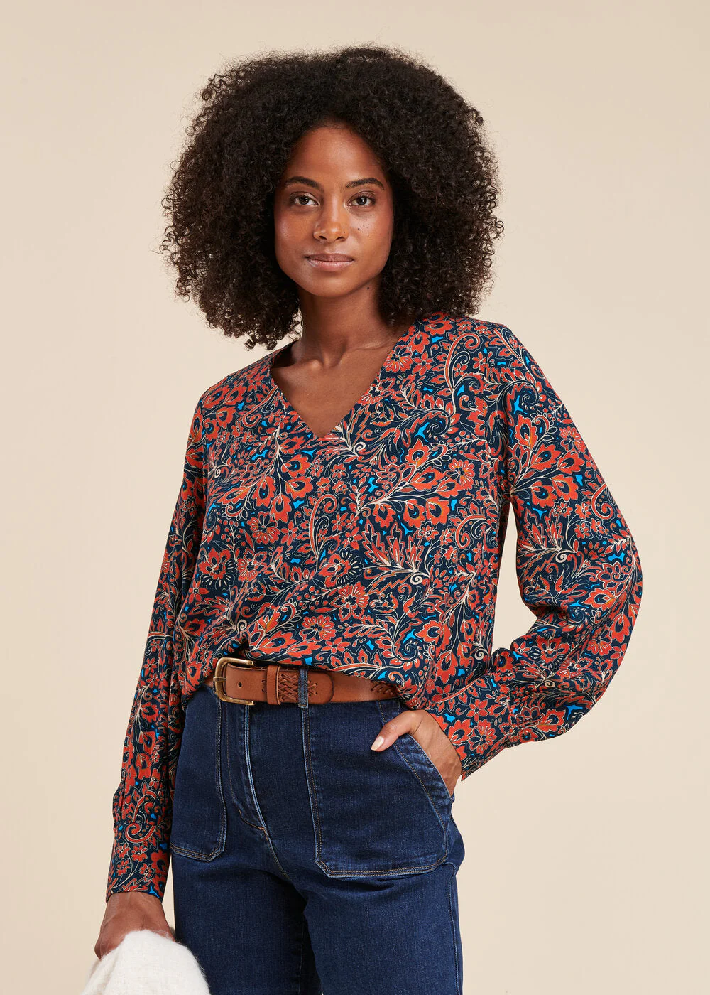 Top coupe droite à imprimé floral en viscose écoresponsable Ecovero, encolure V, manches longues avec larges poignets boutonnés.Notre mannequin mesure 1m77 et porte une taille 36/S.Ce modèle taille normalement, prenez votre taille habituelle.