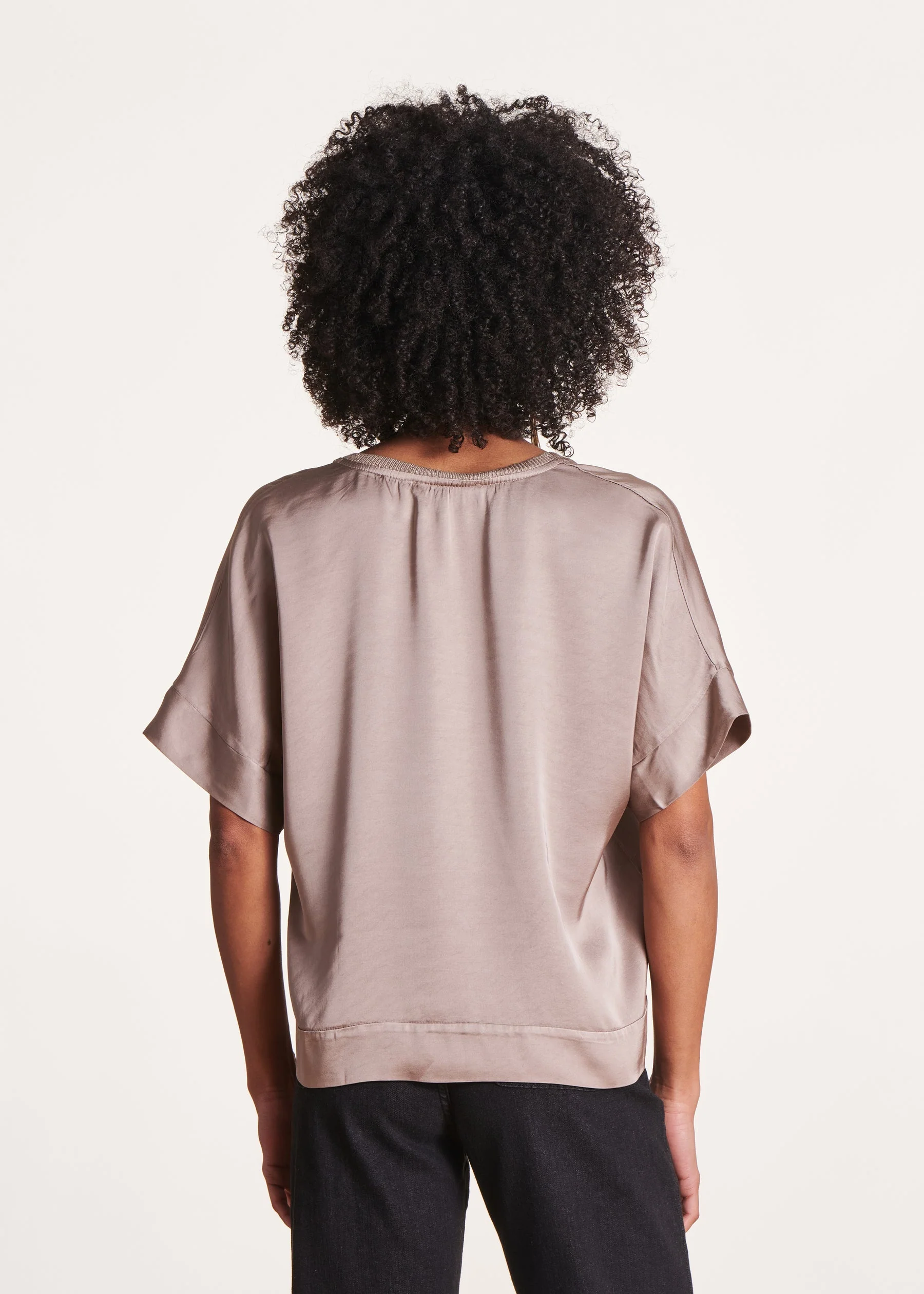 – Top en satin de viscose– Manches courtes avec détail de revers– Encolure V avec détail de bord-côte lurex