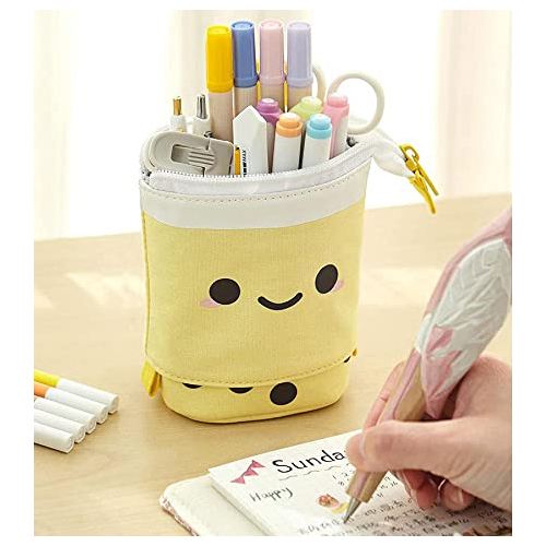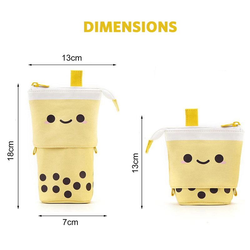 Inspiré des dessins nippon, cette Trousse Rétractable Bubble Tea Jaune est décorative et très fonctionnelle.