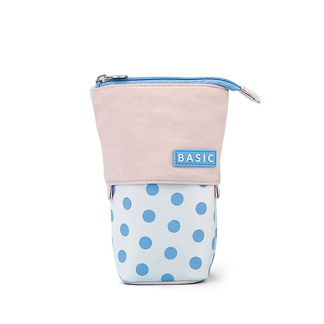 Voici une trousse Originale pour ranger vos crayons. En un coup de tirette, cette trousse rétractable pois grise se transforme en un pot à crayon.