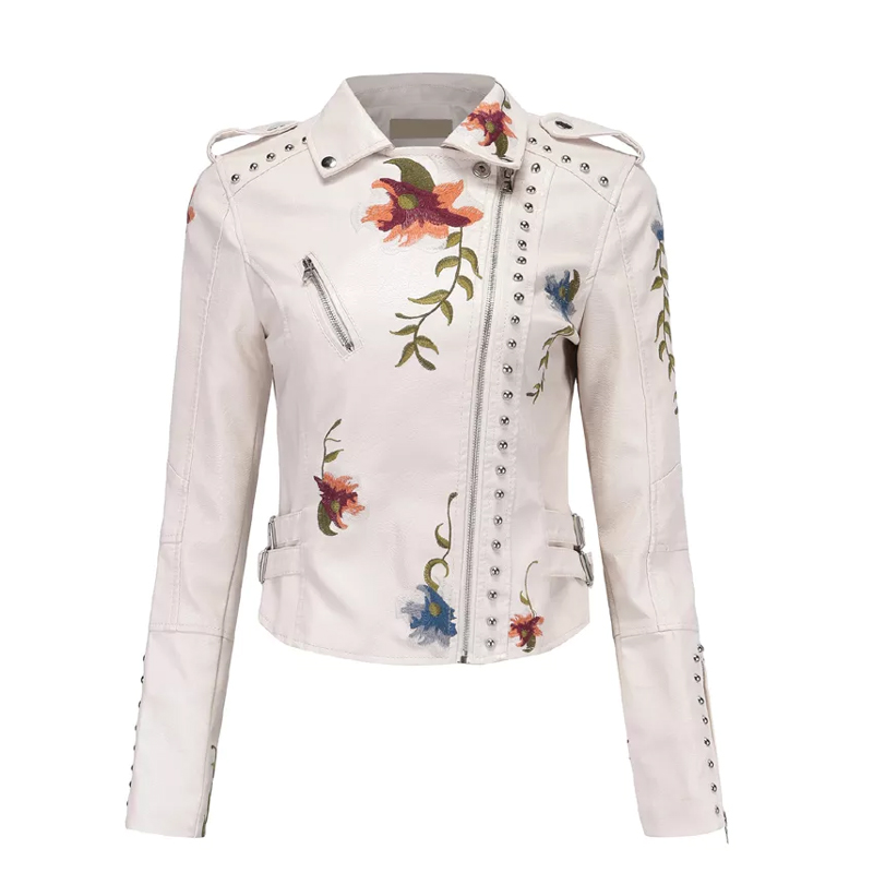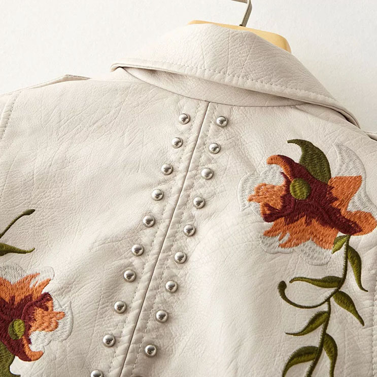 - Détails : Fleurs brodées et clous, doublure satinée, une poches zippées