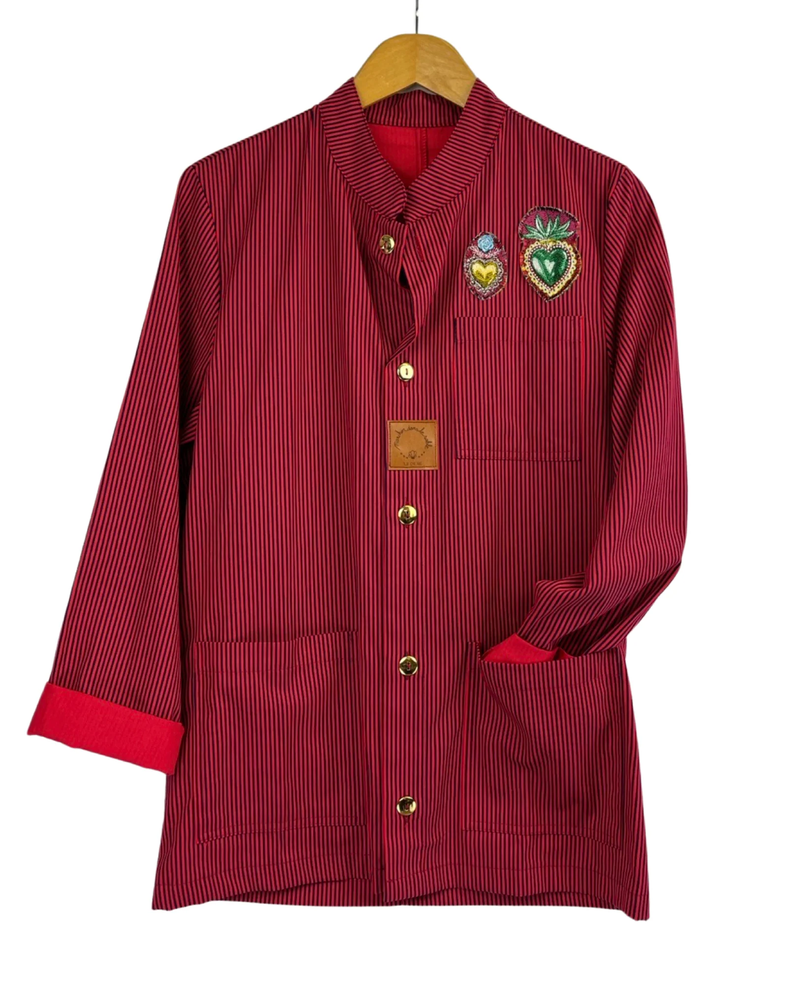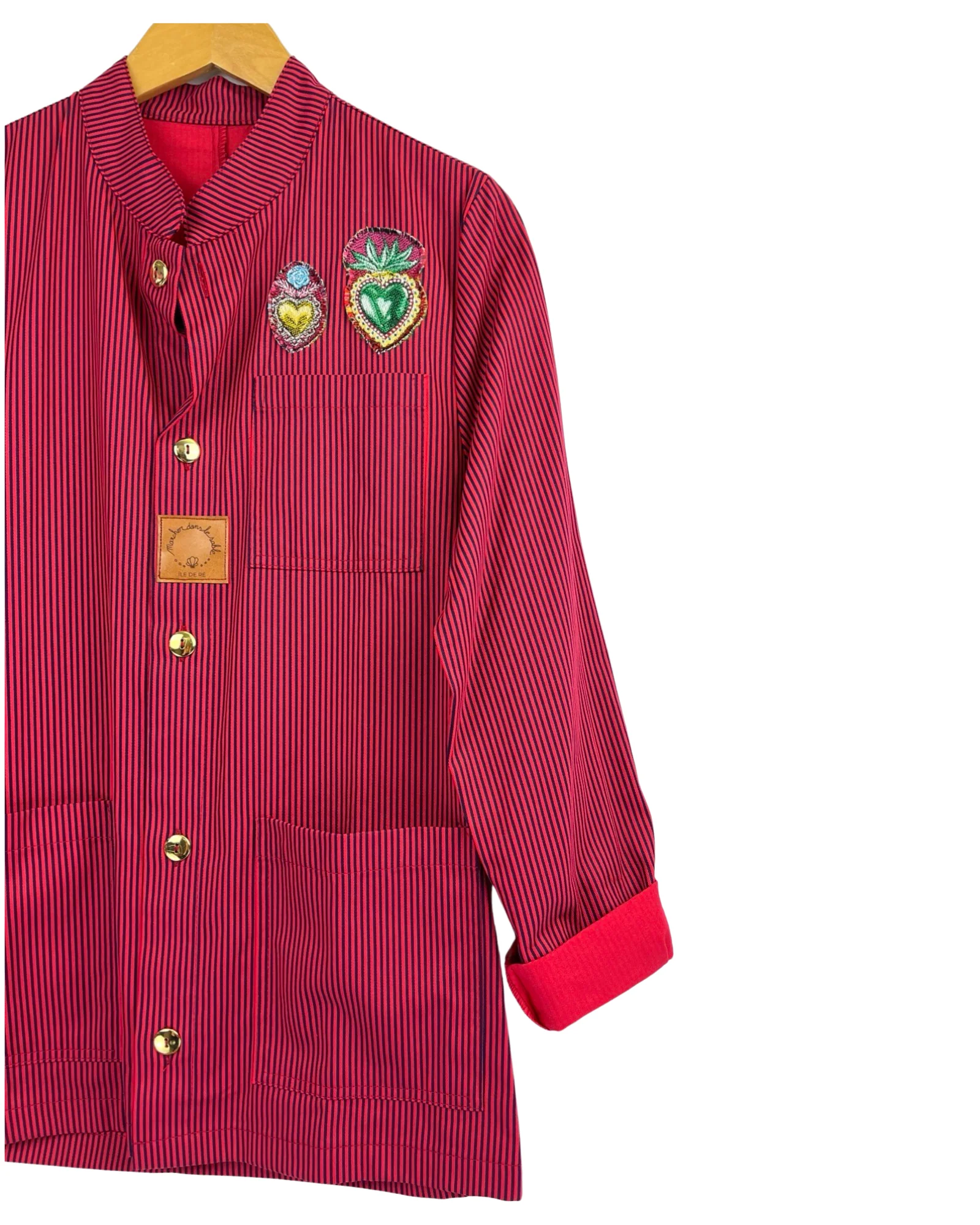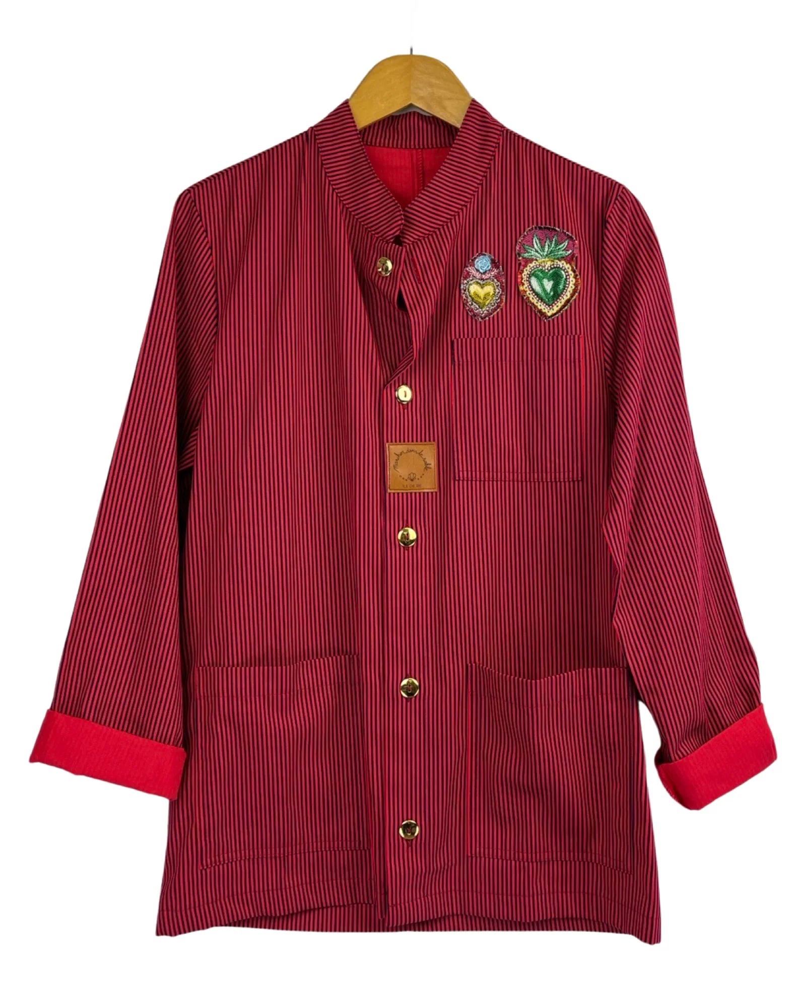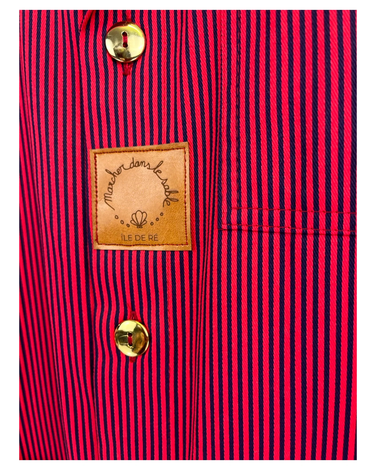 – Véritable Veste de Travail 100% Coton Bordeaux rayée noir.