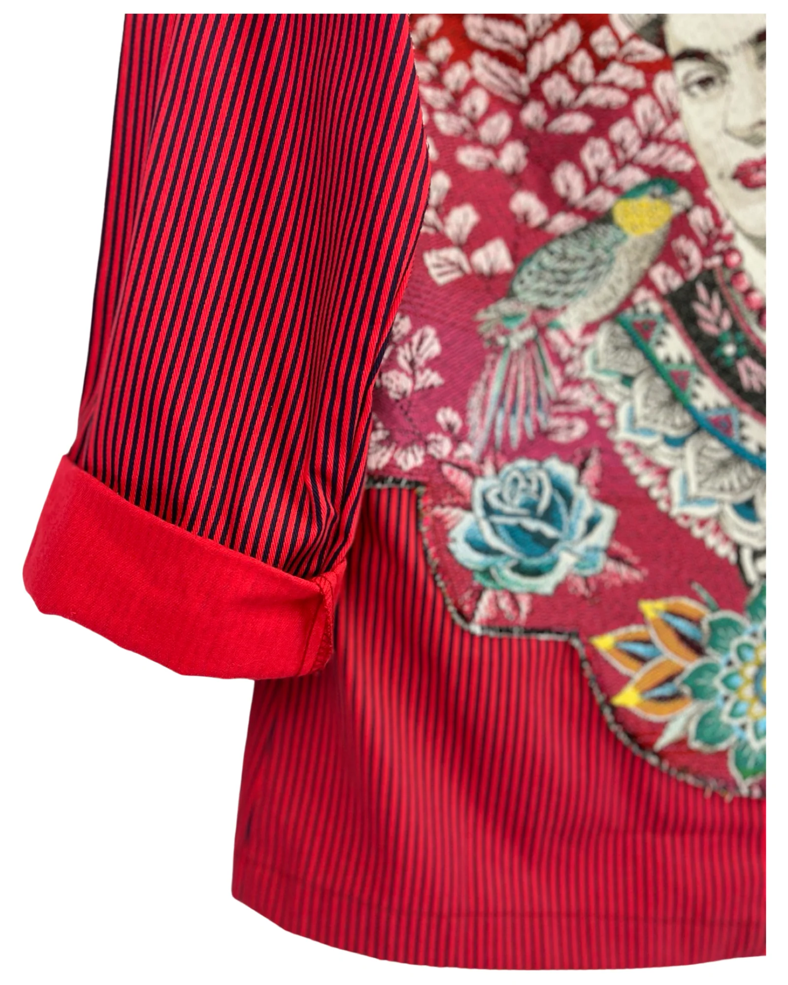 VESTE DE TRAVAIL VINTAGE FRIDADescription et entretien : – Véritable Veste de Travail 100% Coton Bordeaux rayée noir. – Tissage Jacquard Fabrication Française.– Jacron logo simili cuir fabrication française.– Boutons dorés vintage. Ce modèle convient pour une taille S (36) petit M.Coupe droite mixte. Col Mao. Tissu léger.Longueur de la veste : 72 cm.Largeur sous […]