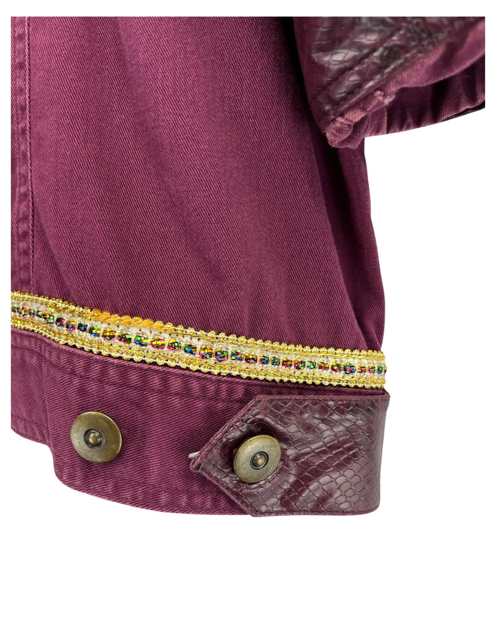 Envers du col et revers des manches en croco simili d’origine.