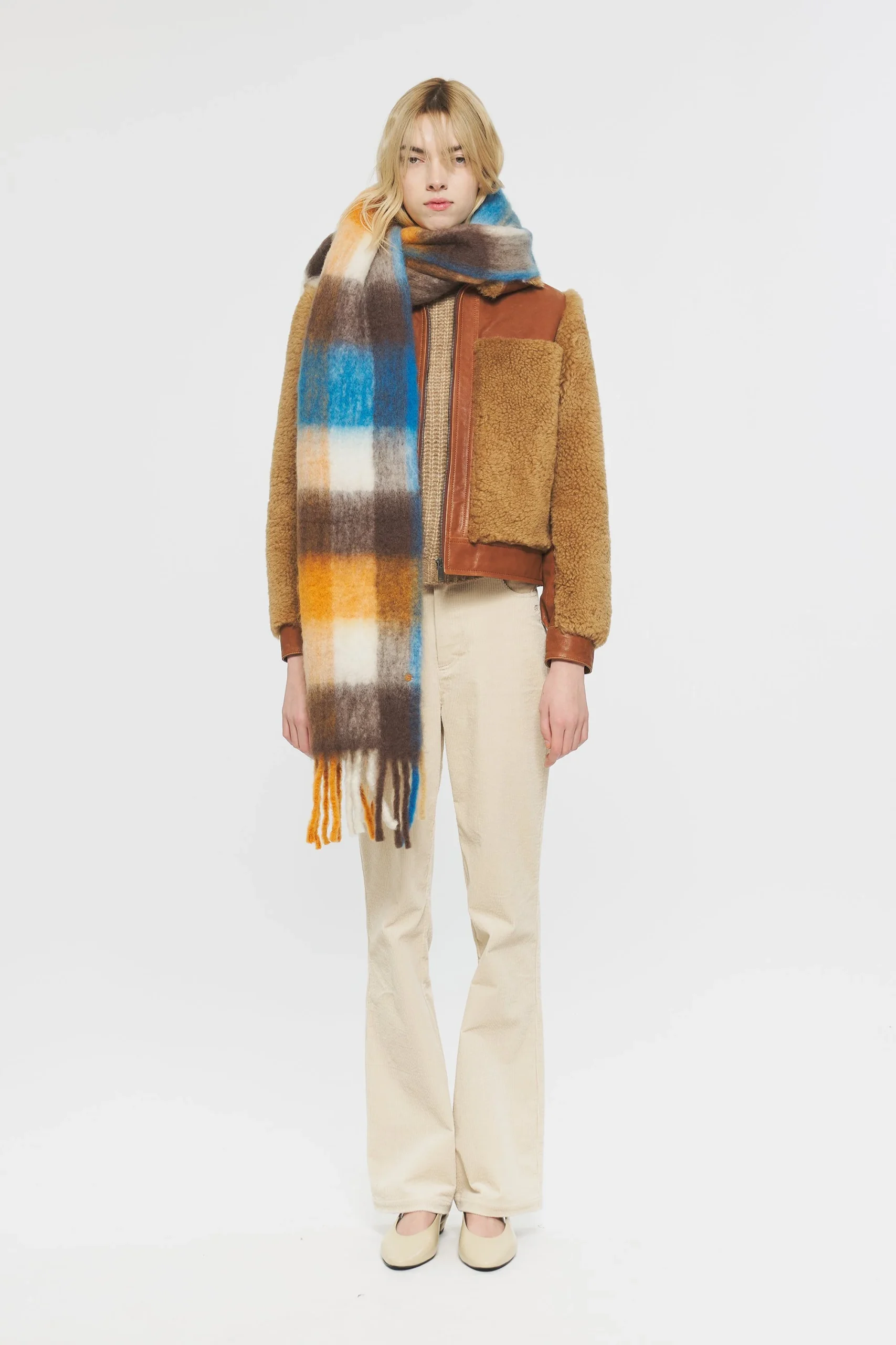 Veste en peau de mouton doublée en coton. Fermeture sur le devant avec un zip et aux poignets avec des boutons pression. Col en peau de mouton. Empiècement en cuir lisse de mouton.