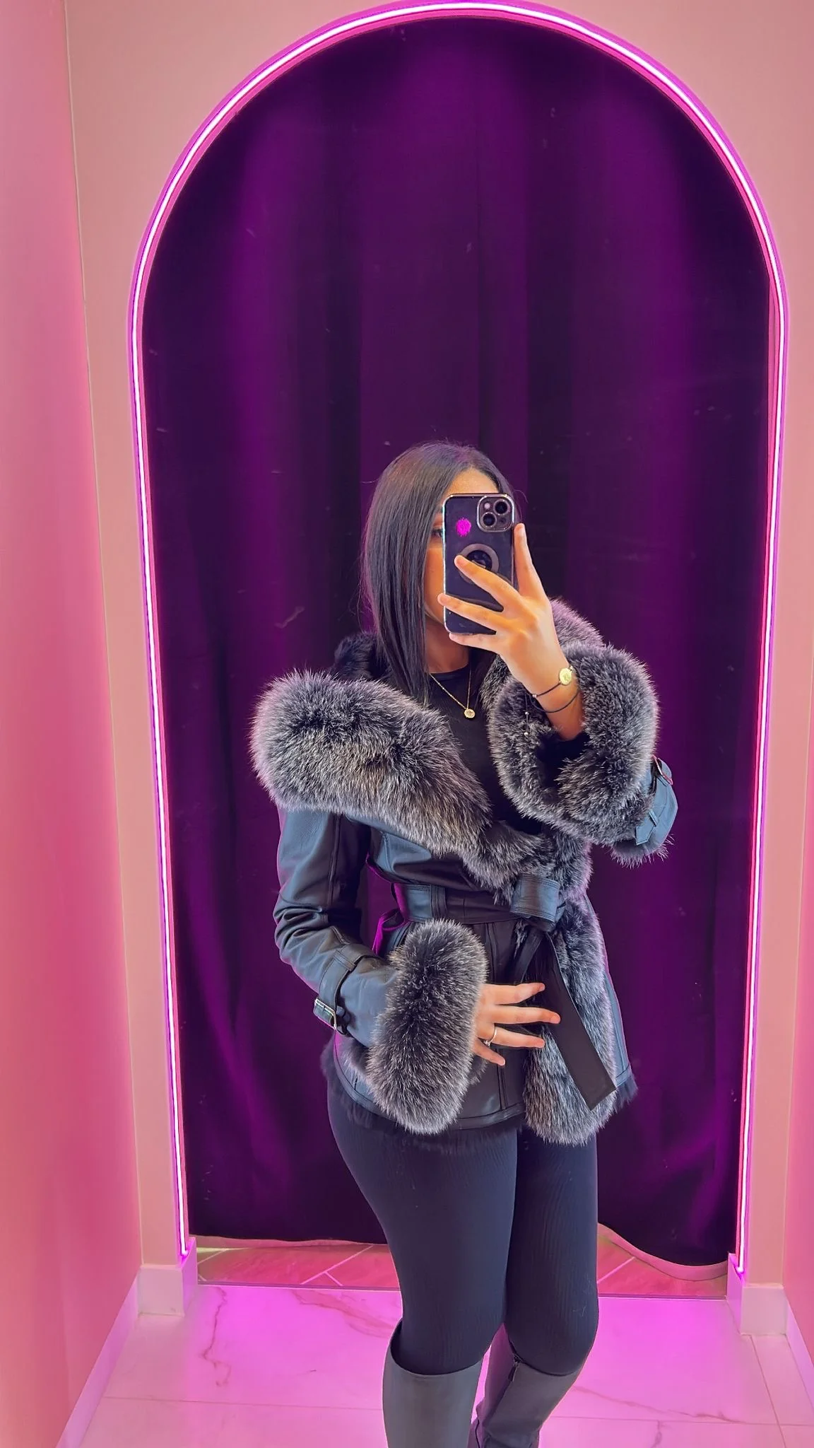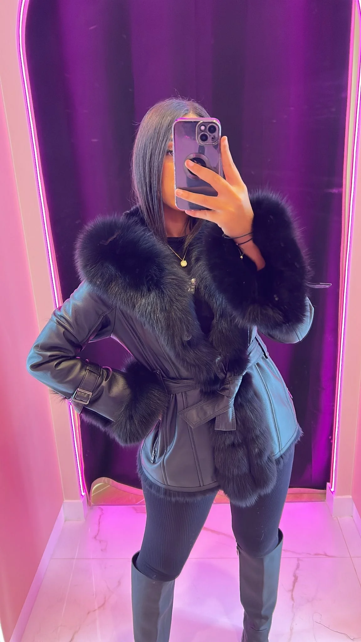 Découvre notre incroyable manteau en cuir noir avec de la vraie fourrure luxueuse qui s’étend sur toute sa longueur. Ce manteau est le symbole ultime de l’élégance et du style. Fabriqué avec des matériaux de haute qualité, il est à la fois chaud, confortable et résistant. La combinaison du cuir noir et de la fourrure apporte une touche de sophistication à n’importe quelle tenue. Que ce soit pour une soirée spéciale ou pour te démarquer au quotidien, ce manteau en cuir avec de la vraie fourrure sera ton allié incontournable durant plusieurs années . Ne manque pas l’occasion de te procurer cette pièce de luxe dès maintenant !
