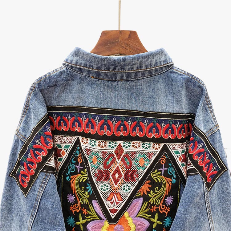 Ajoutez une touche ethnique à votre style avec cette veste jean hippie Bohème. Intemporelle, la veste en jean est souvent un basique de notre garde robe. Pour adopter le style Bohème, on la customise avec des empiècements brodés sur le dos. Un côté authentique et précieux qui rappelle les costumes traditionnels de certaines ethnies dont le style est une véritable tendance.