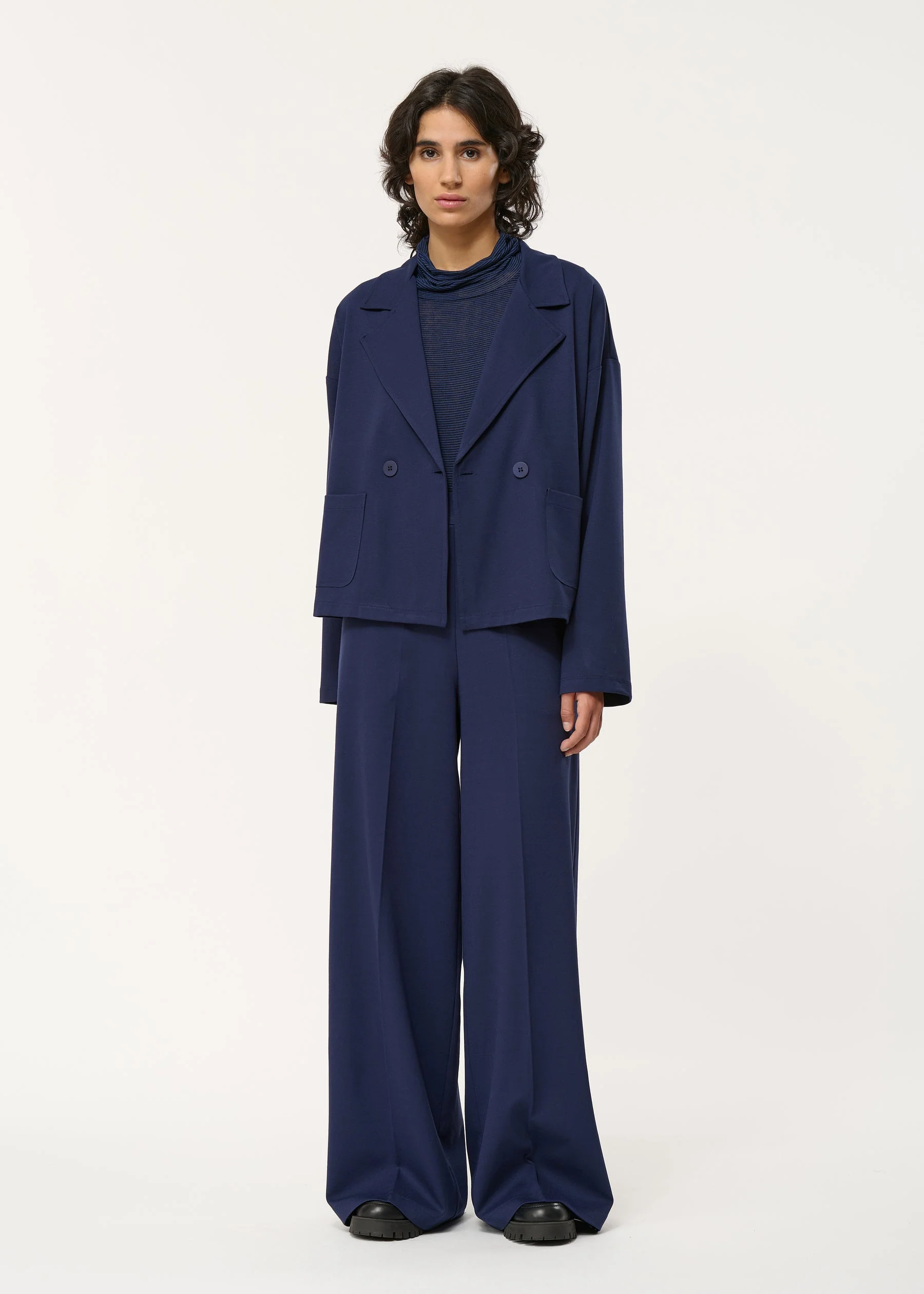 Veste tailleur bleu marine oversize en jersey milano