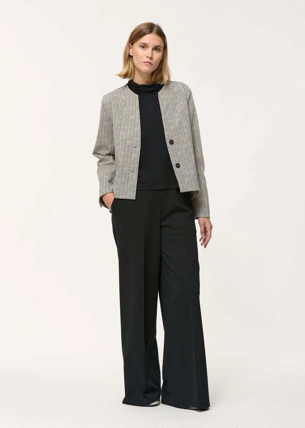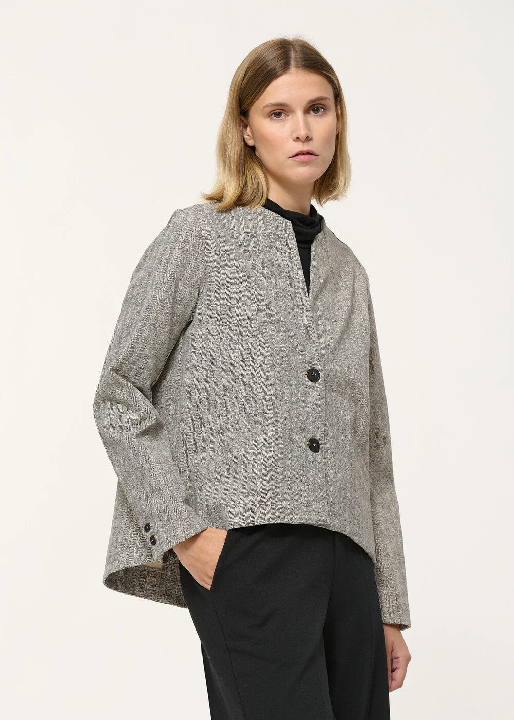 Veste trapèze grise à imprimé chevron sans col