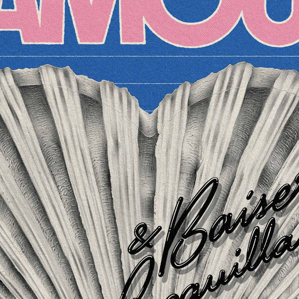 Un traité rétro mélangeant dessin noir et blanc avec une typo et un fond de couleurs vives, « L’amour à la plage » rend hommage à notre bel été.