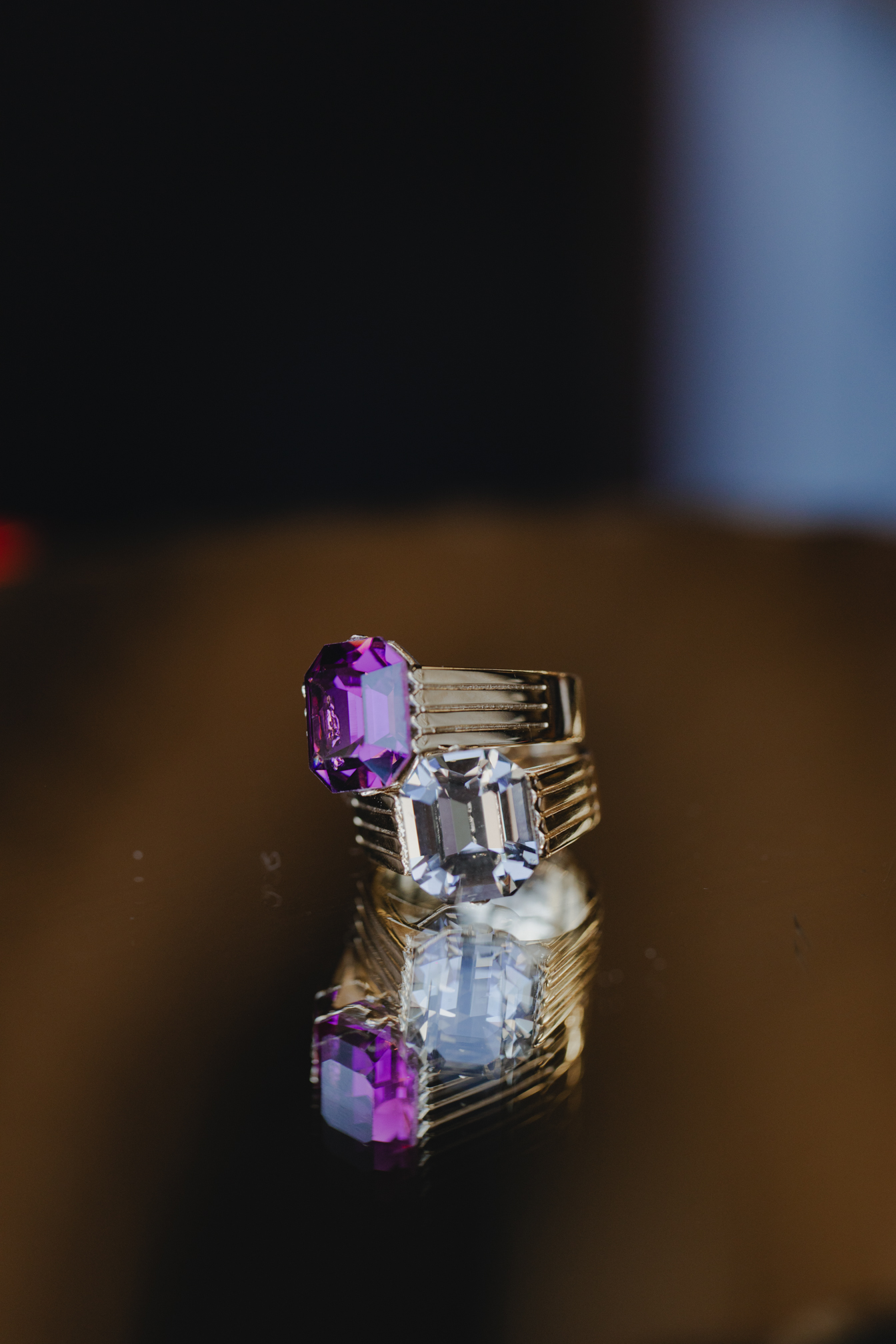 La bague Papi double en Plaqué or et Cristal Prune et Gris de Florence Verdier.
