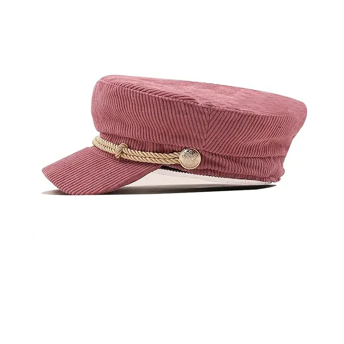 Béret Casquette Gavroche Femme Velours Côtelé Rose
