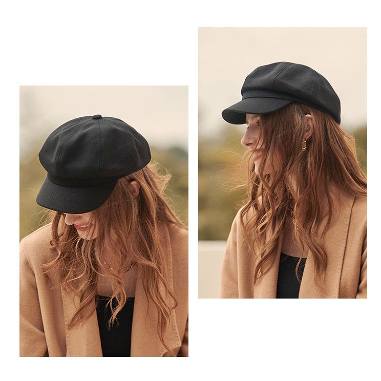 Béret Casquette Rayé Feutre Noir