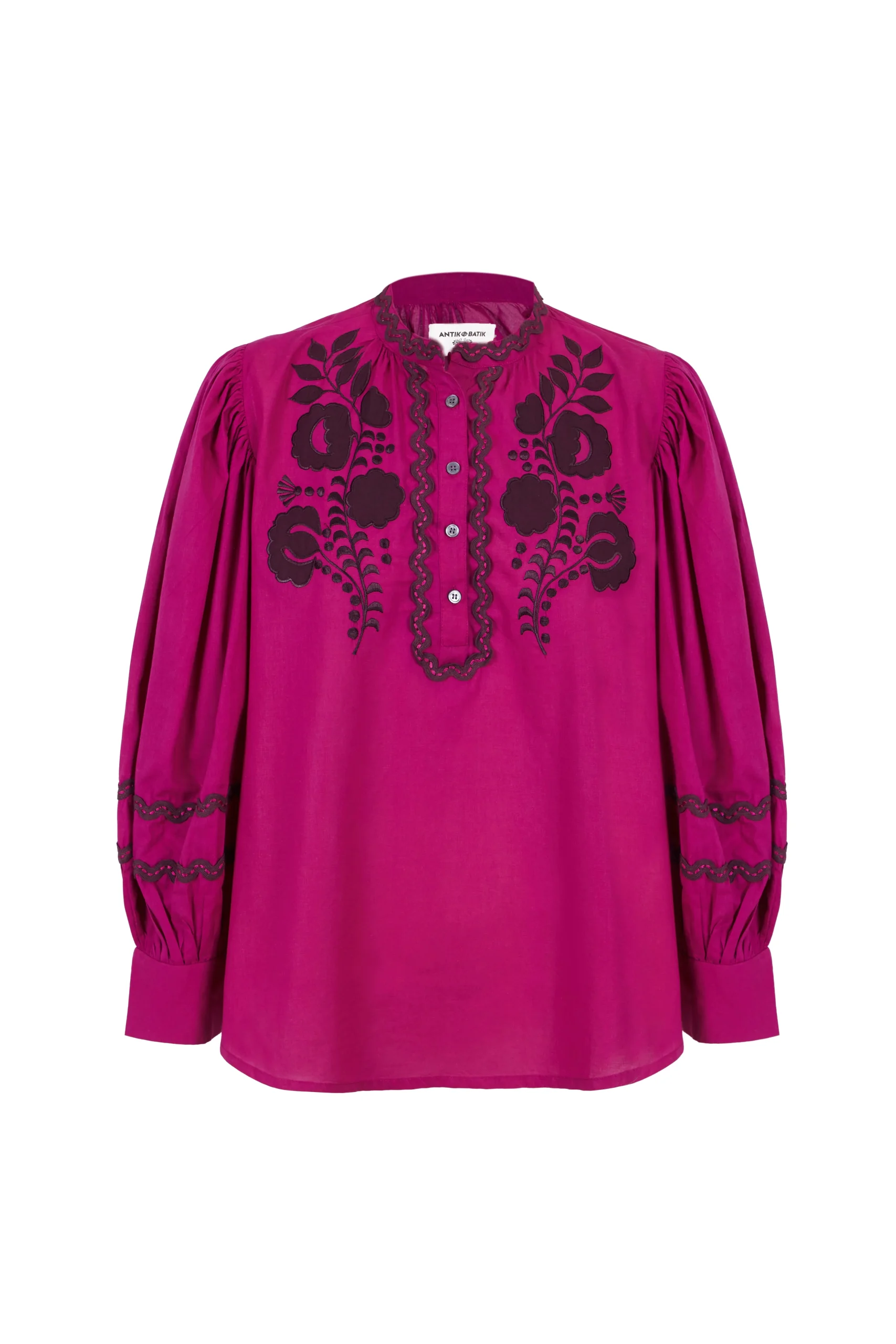 Blouse manches longues imprimée et brodée. Broderies florales.