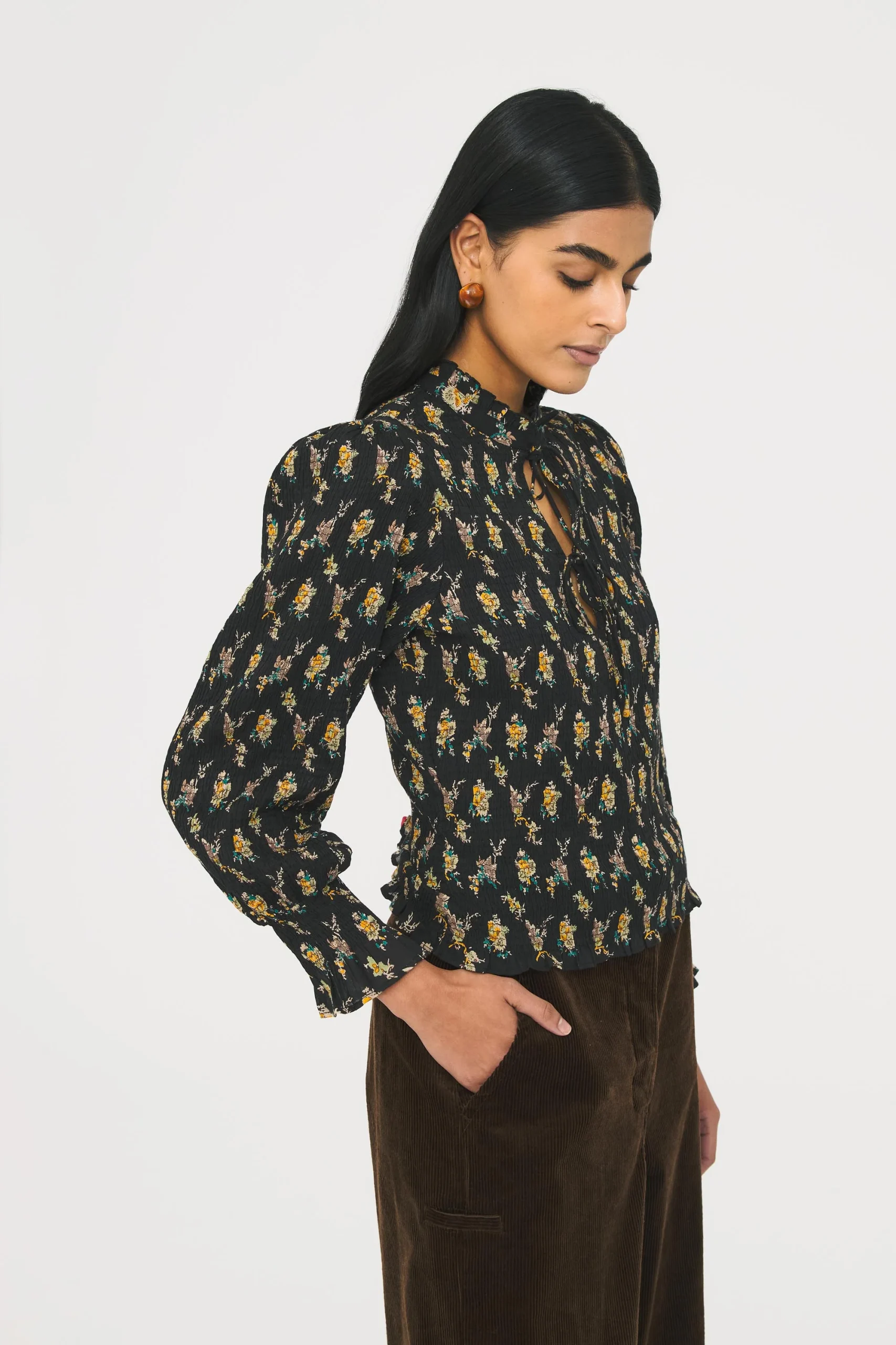 Blouse entièrement smockée en jacquard de coton imprimé.