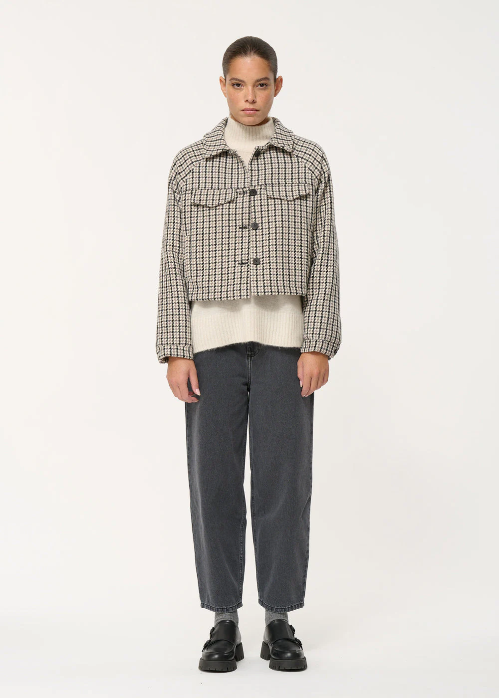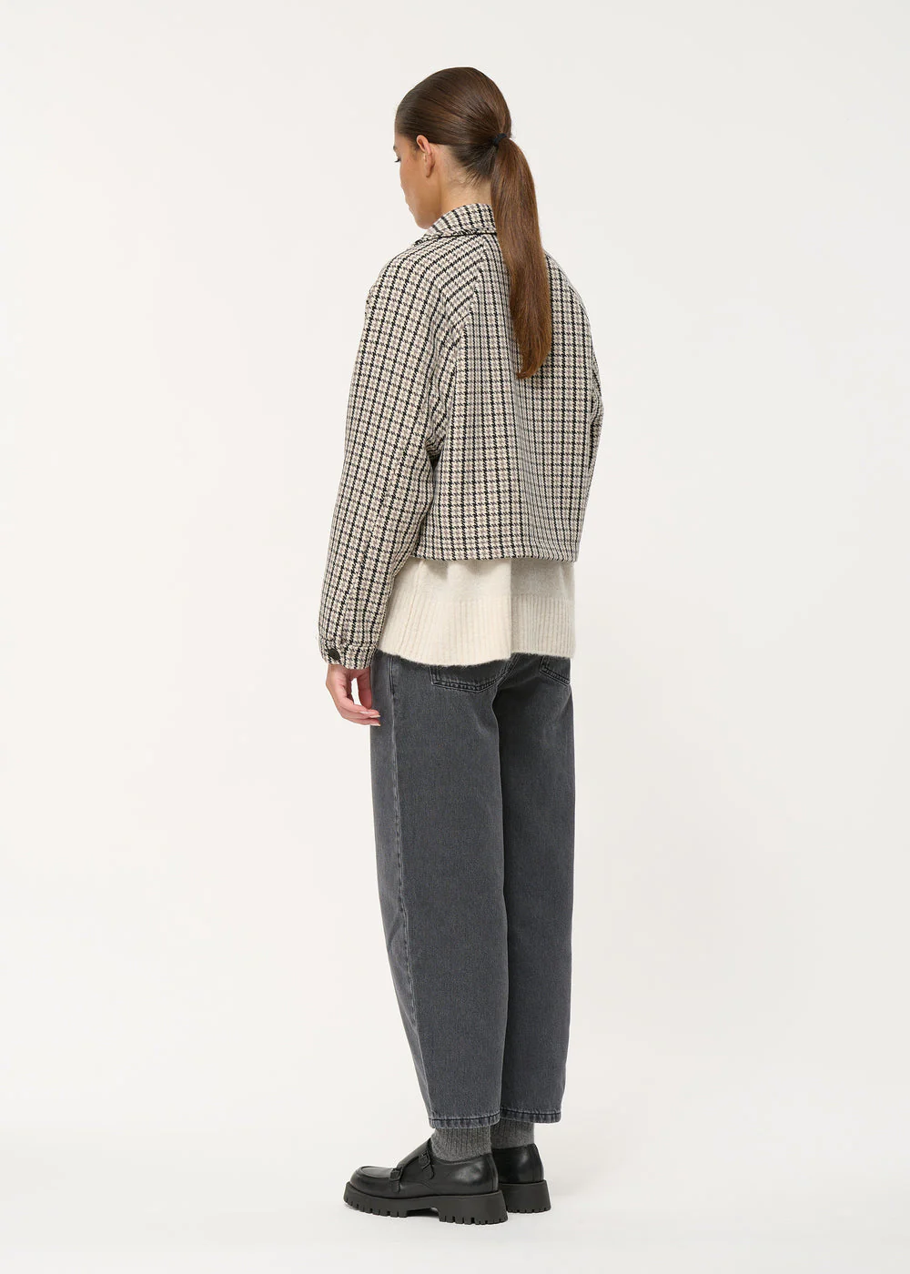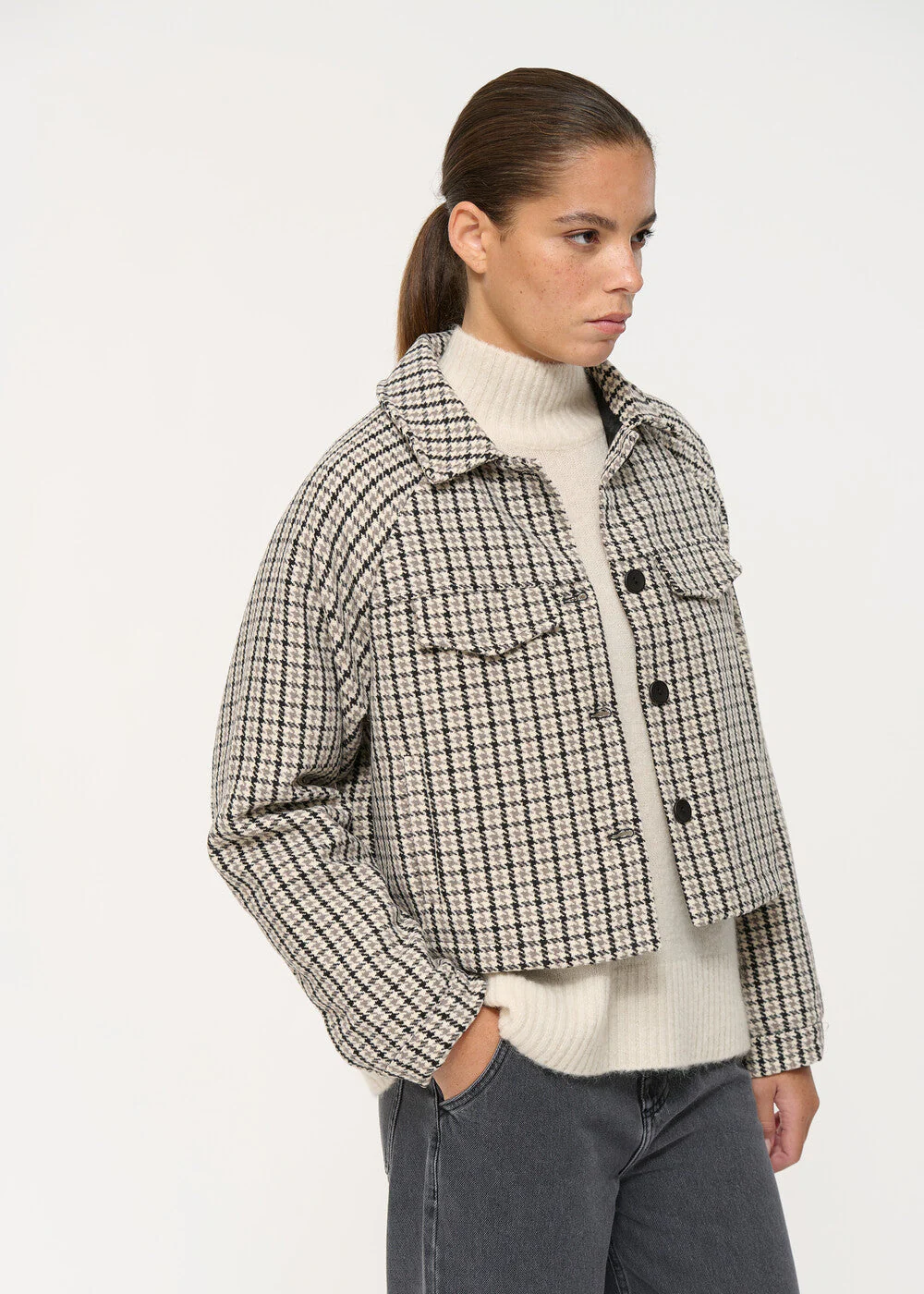 – Blouson court à motif pied-de-poule