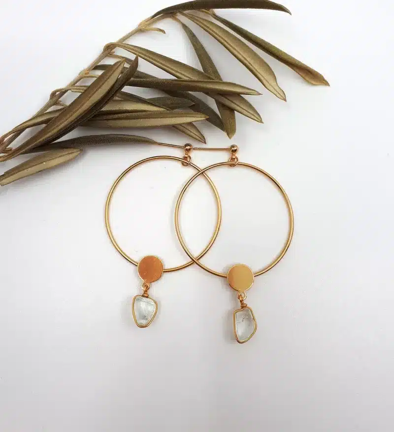 Grandes boucles d’oreilles esprit créoles avec feuille d’or véritable.