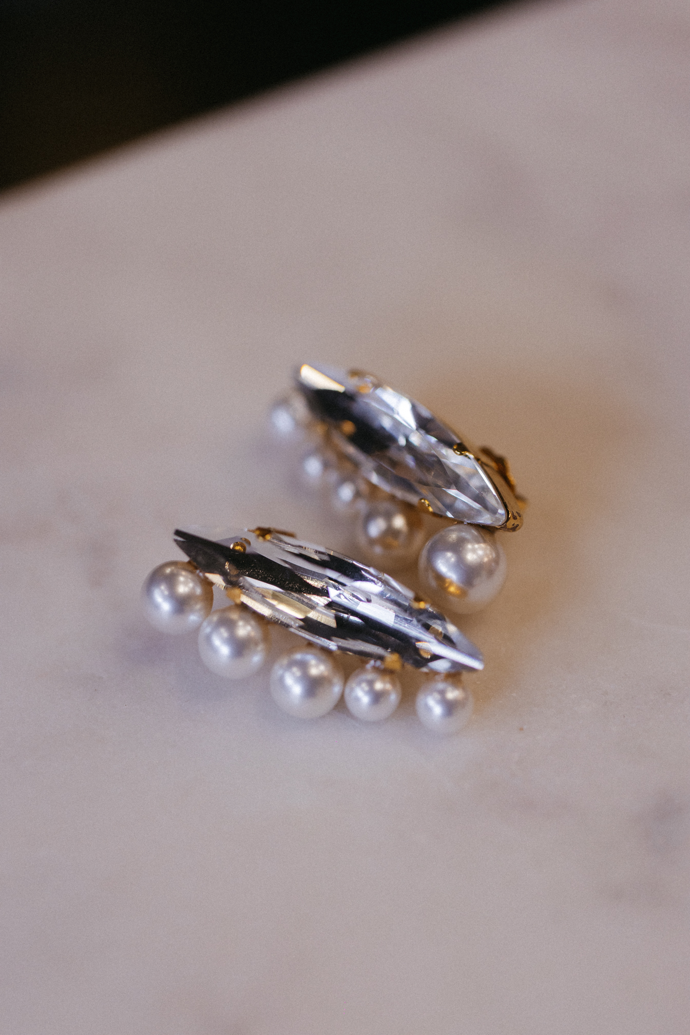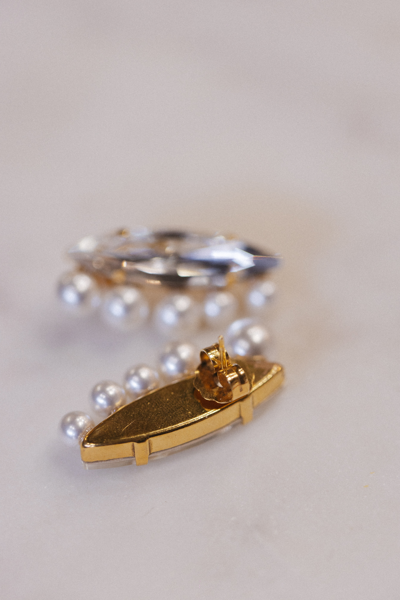 La navette centrale capte la lumière avec intensité, tandis que les perles apportent une rondeur délicate et raffinée à l’ensemble. Cette composition donne naissance à une pièce lumineuse et équilibrée, au style résolument couture. Les boucles Beauregard habillent le visage avec finesse et caractère, sans excès.