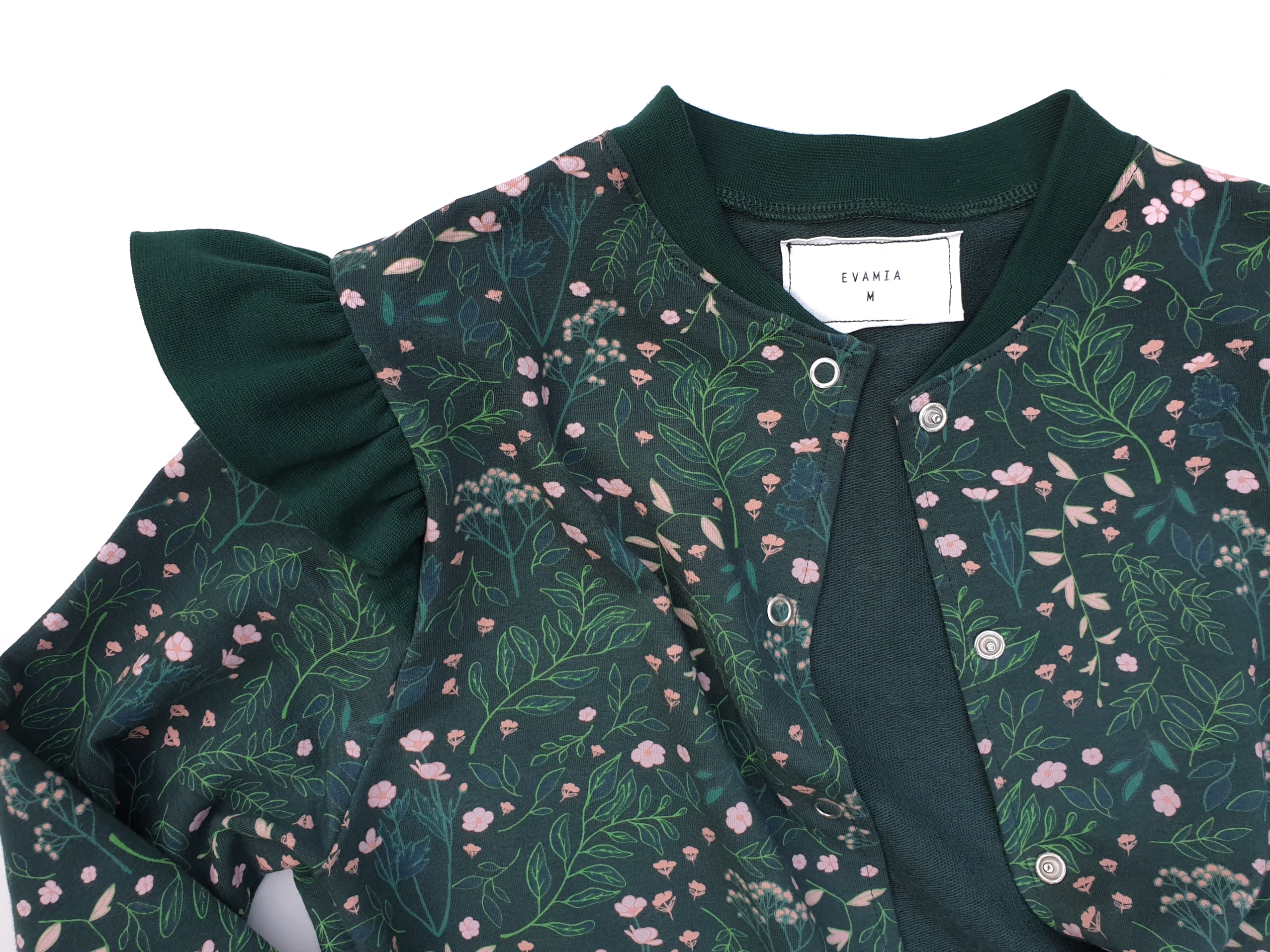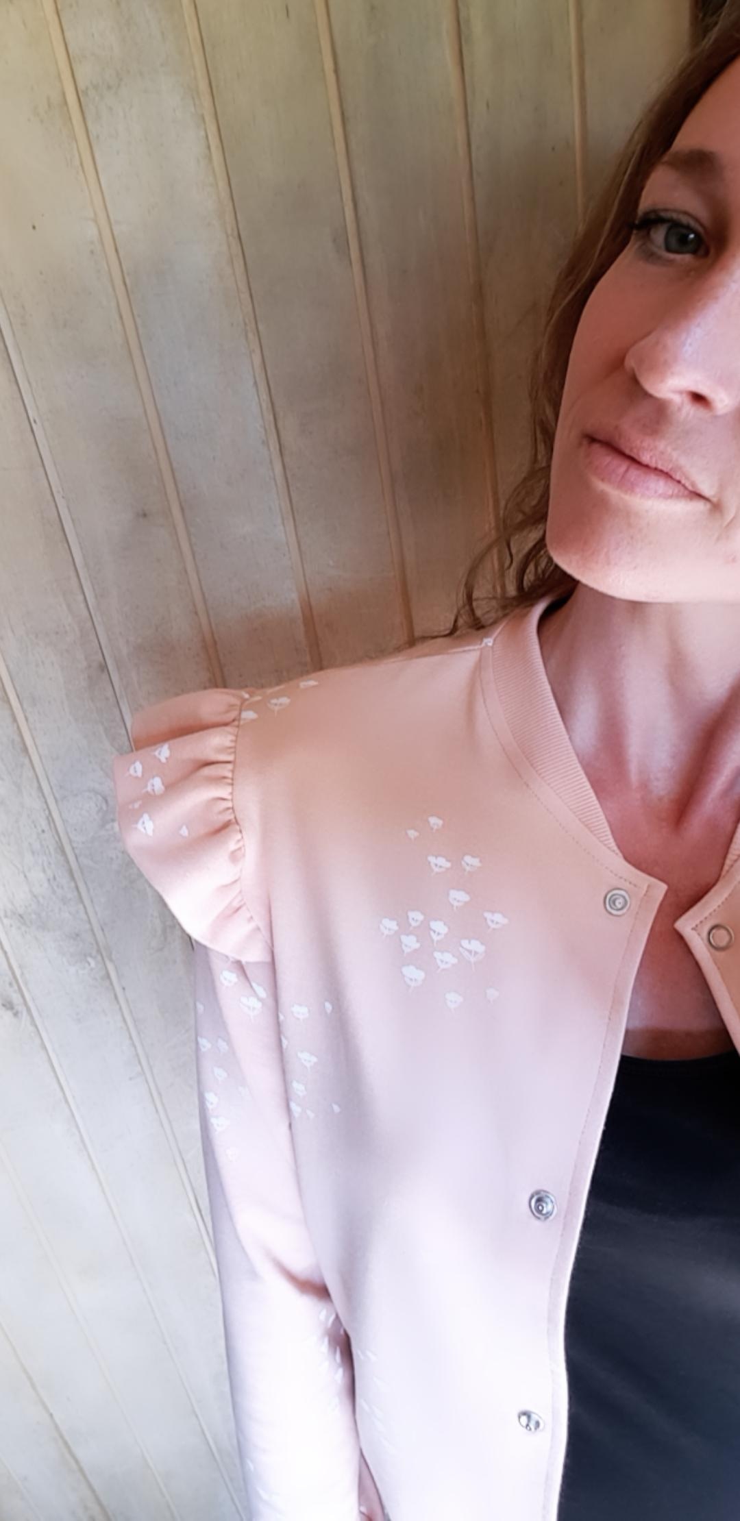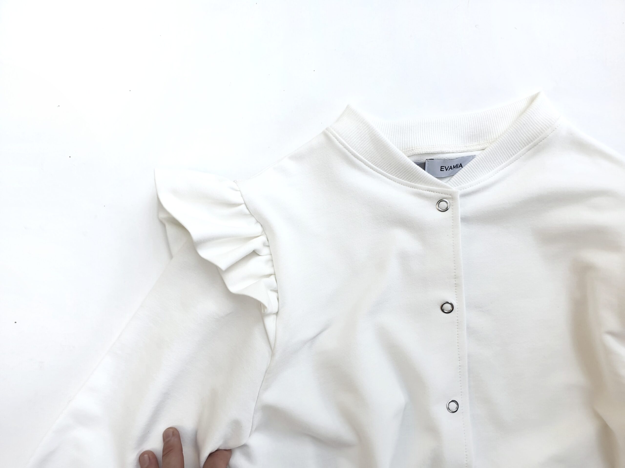 Cardigan en sweat pour femme avec des volants sur les épaules.