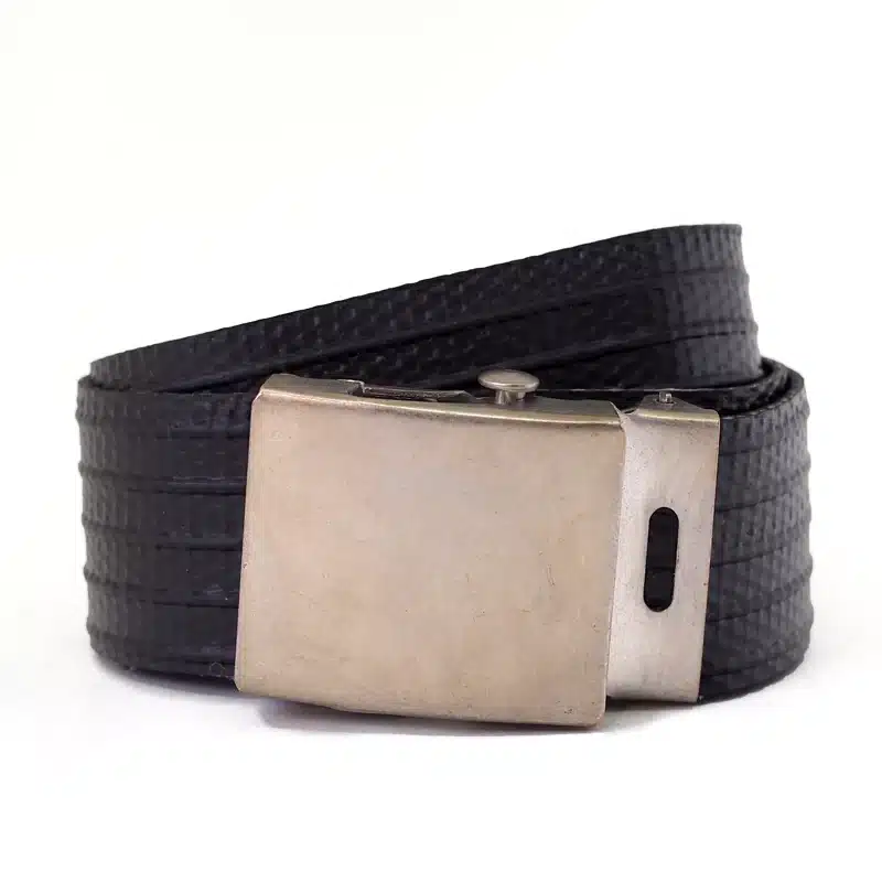 Cette ceinture est fabriquée à partir de rebuts de production de lances-incendies. Ce sont des tuyaux qui présentent un défaut technique et qui ne peuvent pas être utilisés pour leur fonction d’origine auprès des pompiers. « La Vie est Belt » les sauve de la déchetterie pour les mettre autour de votre taille.