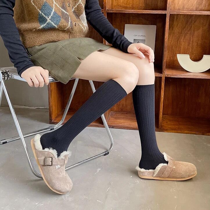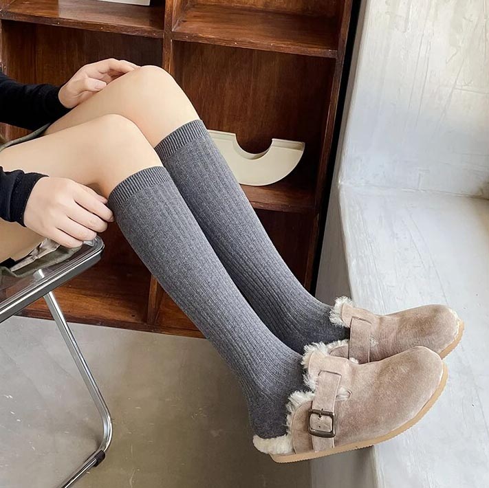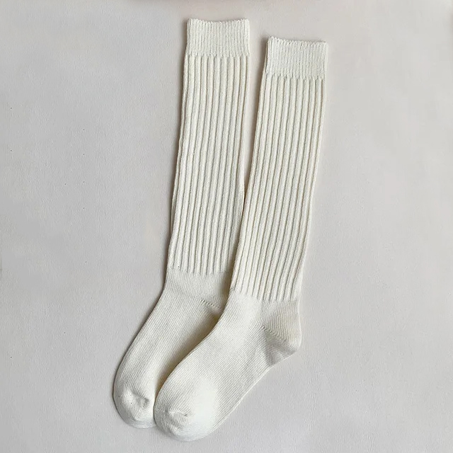 N’ayez plus froid aux jambes grâce à ces magnifiques chaussettes hautes côtelées.