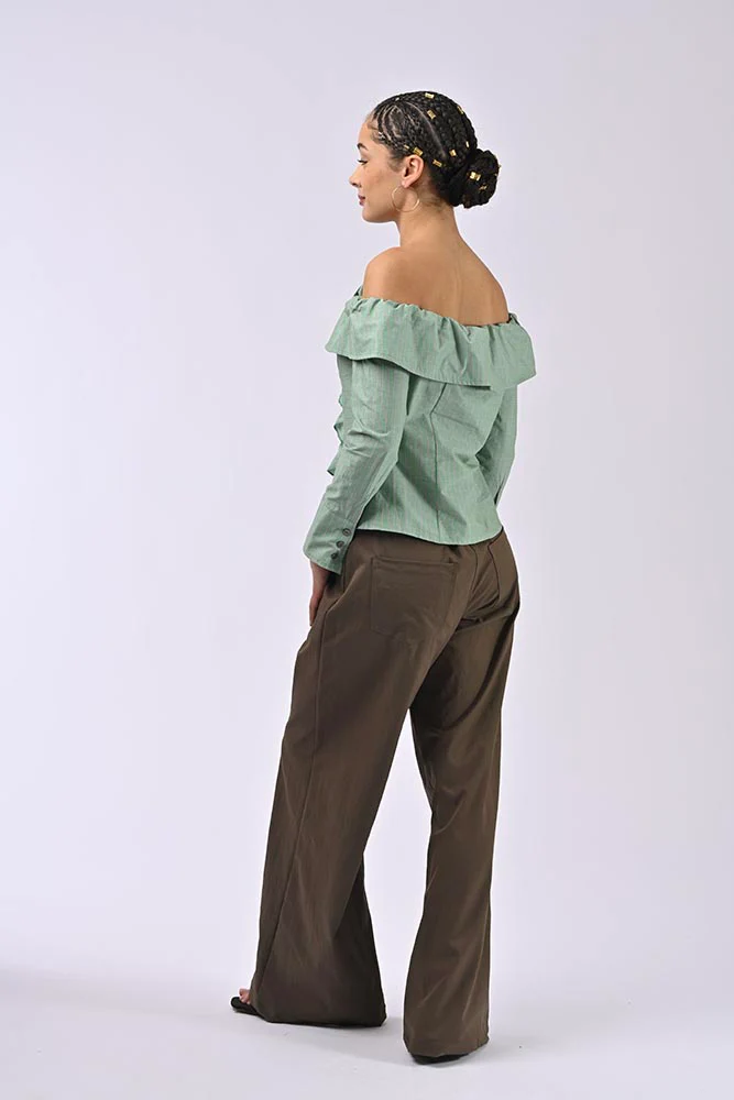 Idéale pour des occasions décontractées ou semi-formelles, la chemise Aglae Vert se marie harmonieusement avec un pantalon large marron ou d’autres basiques pour un look équilibré et tendance.