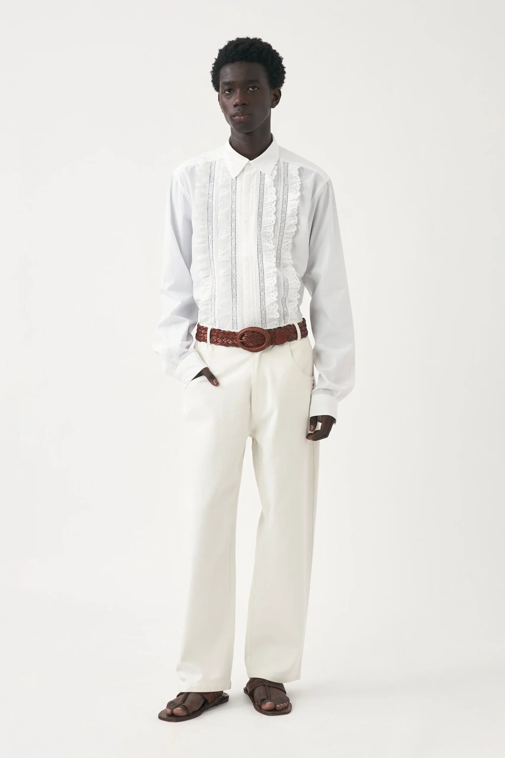 Chemise en popeline de coton. Poche plaquée sur la poitrine. Boutons en nacre.