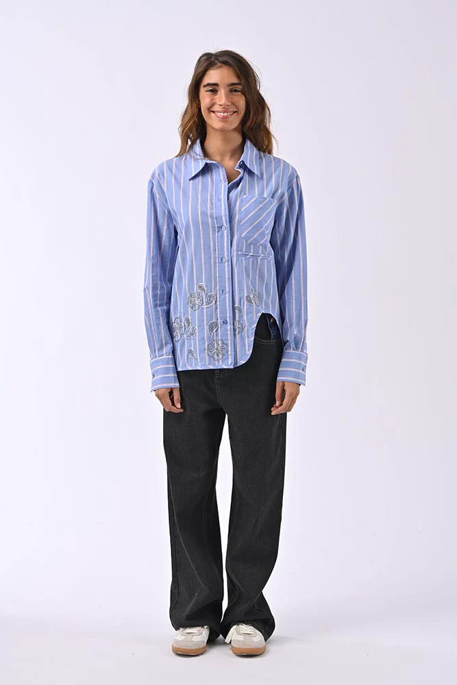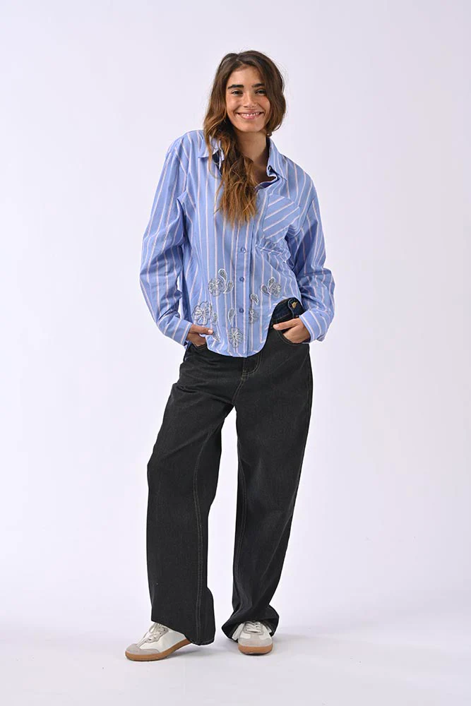 Conçue en 100% coton, cette chemise offre un confort optimal grâce à sa matière légère et respirante. La coupe légèrement ample et l’ourlet arrondi assurent un tombé fluide, tandis que les manches longues aux poignets ajustables avec boutons décoratifs apportent une finition soignée.