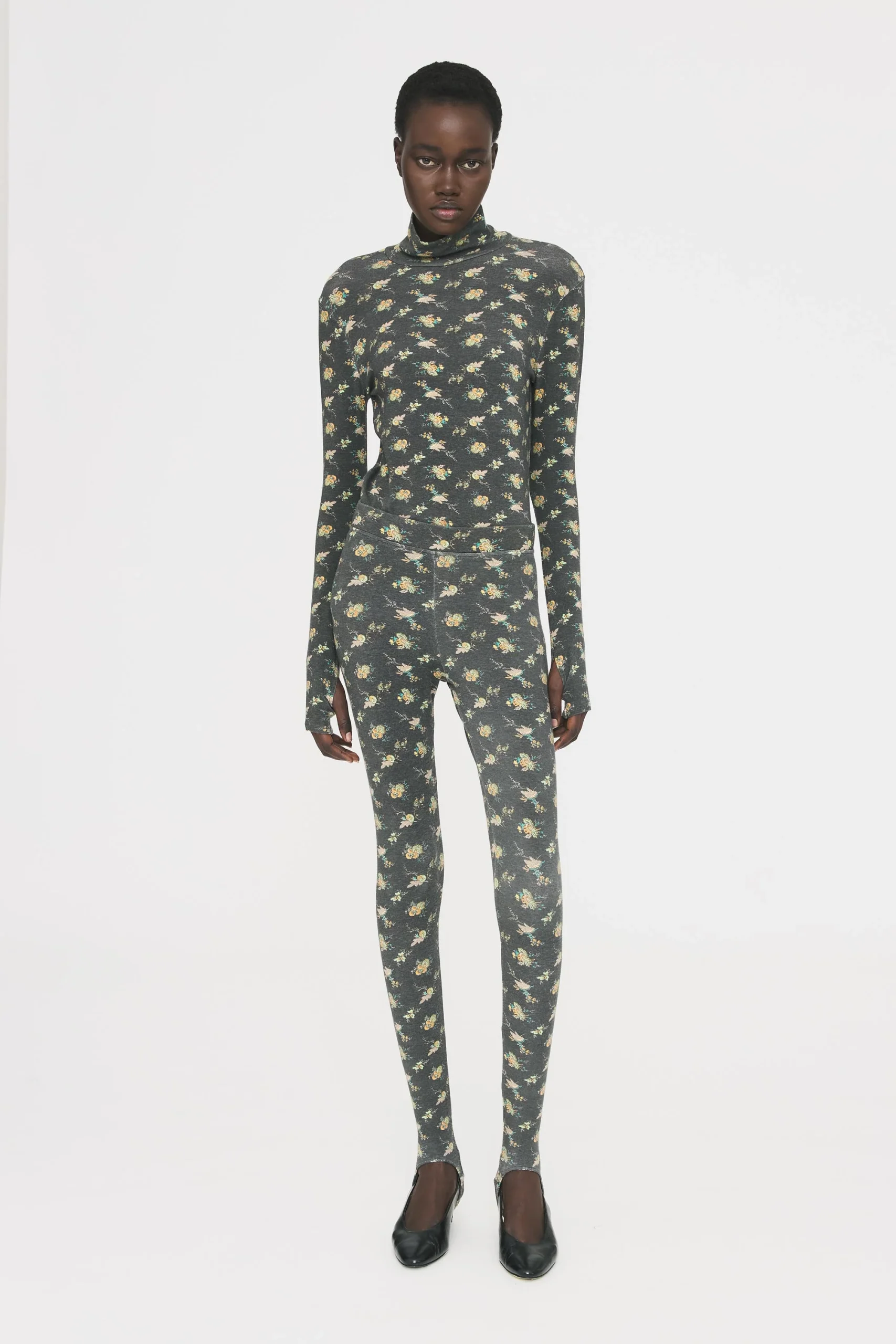 Col roulé en viscose imprimé. Elastique aux mains. Coupe « seconde peau ».