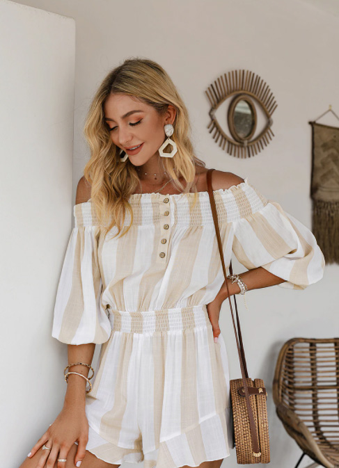 Chic et décontractée cette Combishort Bohème Ample Rayée est parfaite pour les soirées fraîches de l’été. Misez sur une silhouette aux volumes oversized avec son encolure bateau et ses manches bouffantes 3/4.