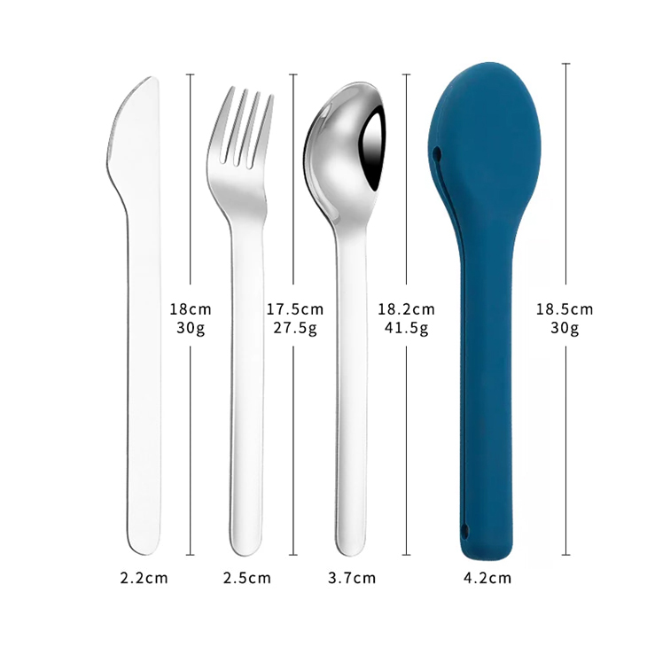 Ce set de Couverts réutilisables inox bleus sont propres au contact alimentaire. Leur résistance à la chaleur atteint jusqu’à 120 ℃. Ce set de couverts de voyage vous offrira fiabilité et sécurité à tous vos déjeuners ! Fini les couverts jetables qui polluent et coûtent cher, optez pour des couverts écologiques.