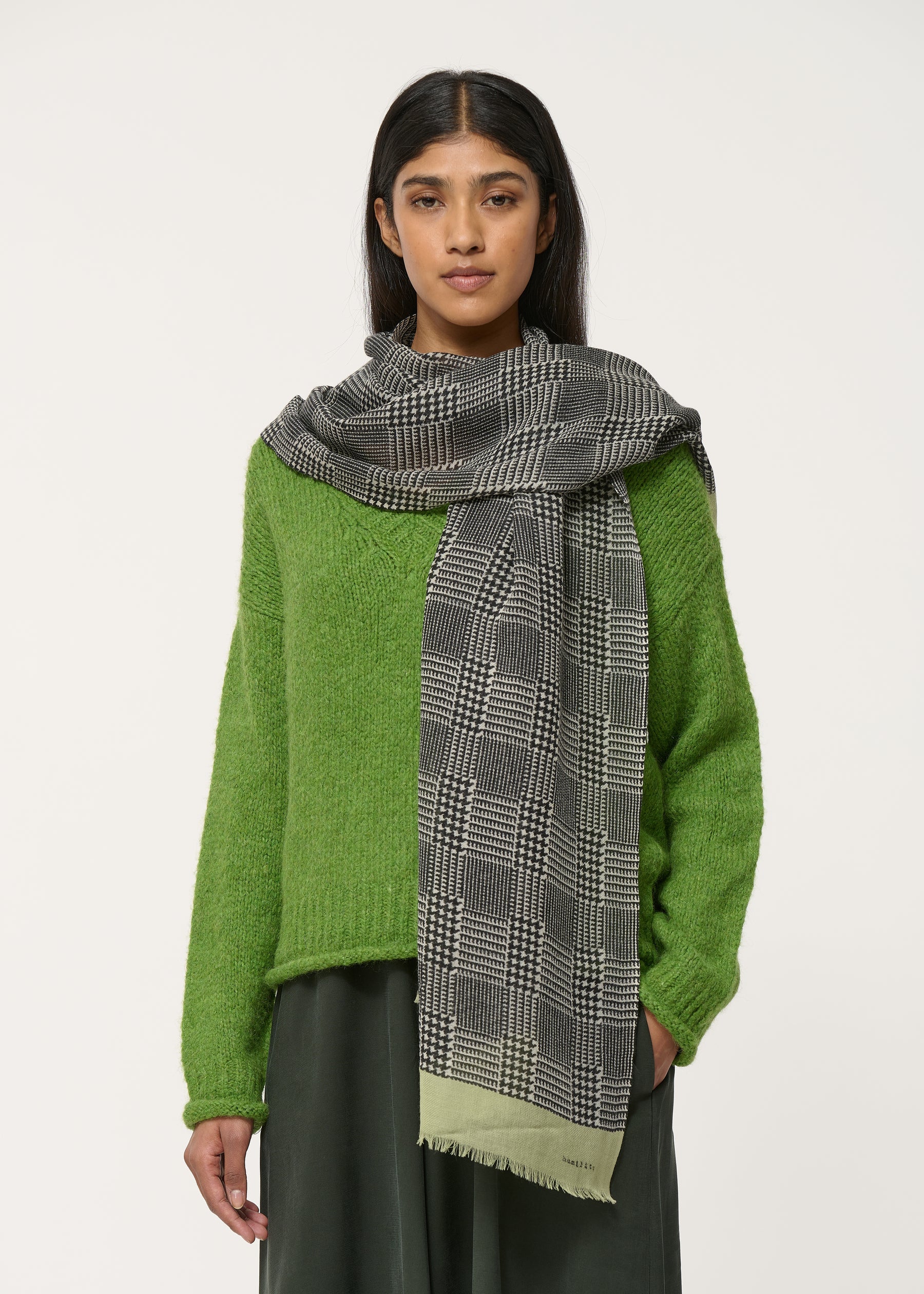 – Foulard en laine fluide à imprimé pied-de-poule
